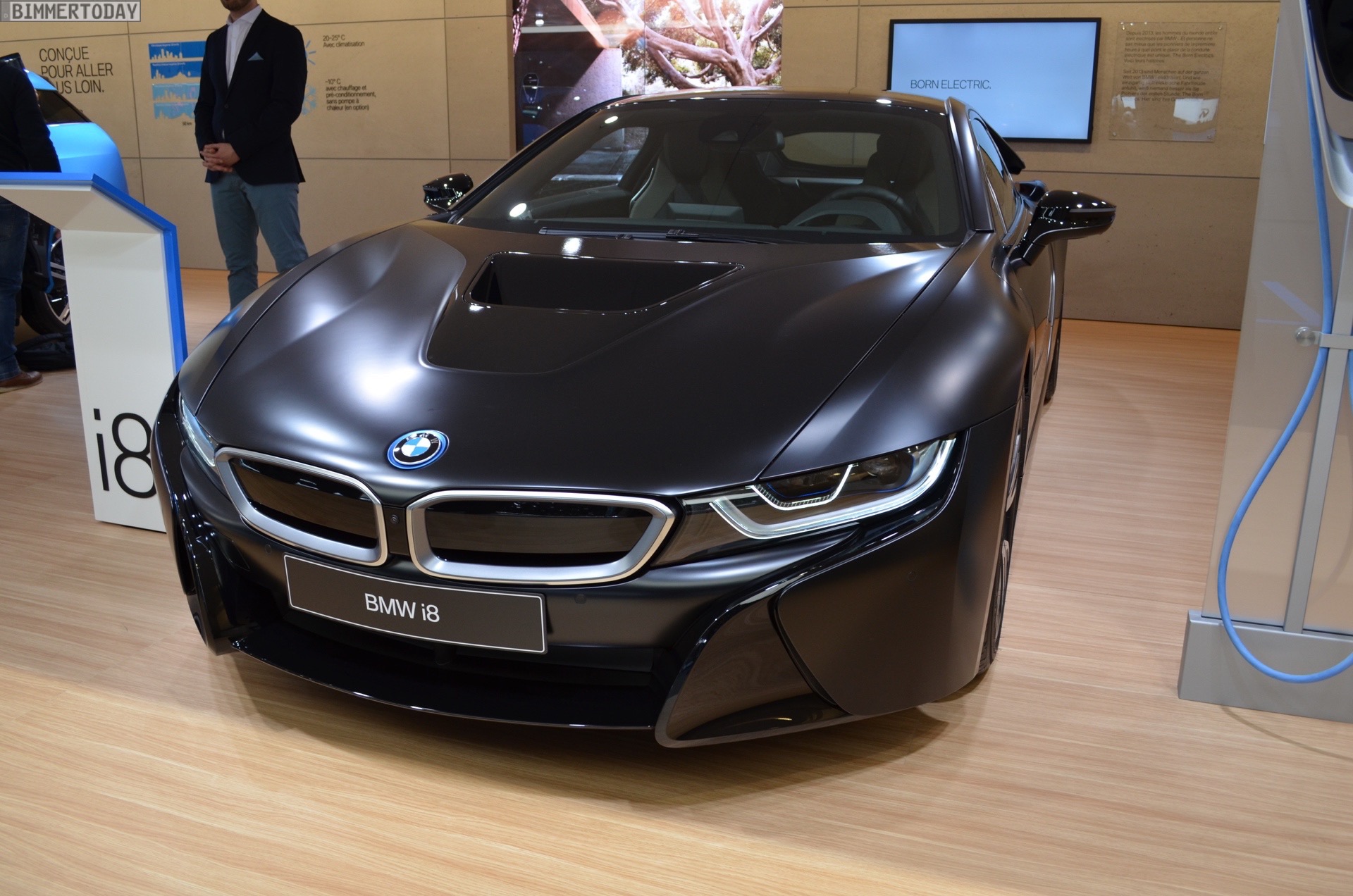 BMW i introduced a special i8 hybrid sportscar at the 2017 Geneva Motor Show. The BMW i8 Protonic Frozen Black Edition is based on a matte lacquer, which in everyday life is often even more impressive than on high-gloss polished cars – and which in the case of the wing door is even more special, because the elements of the Black Belt as with all other i8 are still in glossy black. The i8-typical accents in Frozen Gray are also reserved.