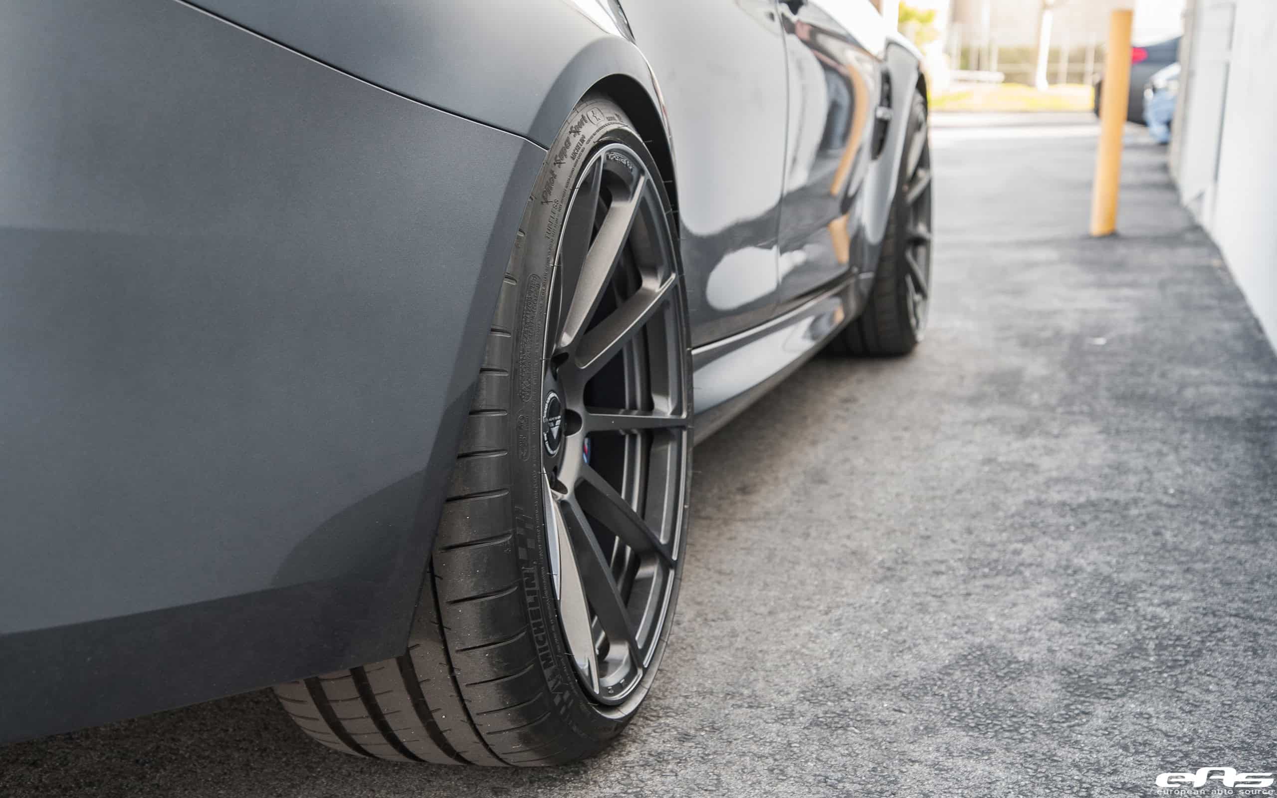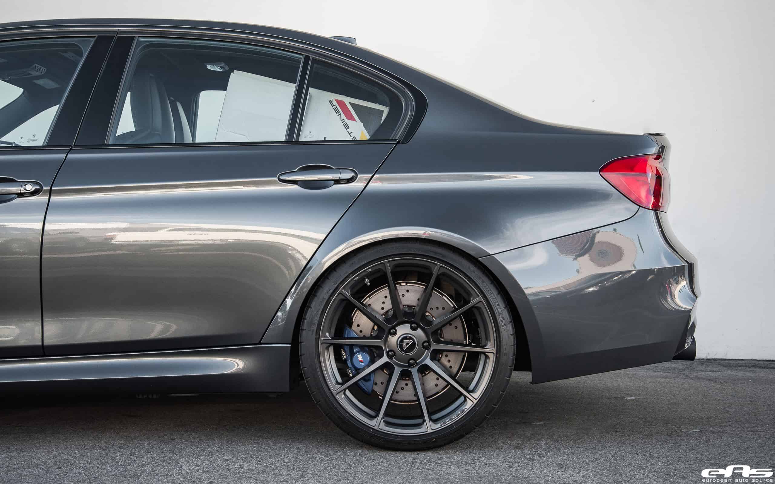 Finally, the M3 received a set of aftermarket wheels from Vorsteiner. These Vorsteiner V-FF 102 Flow Forged wheels are a perfect match to the M3, specially with their low-weight and appealing design. The wheels come in sizes of 20×8.5 and 20×10.5 in the front and rear, respectively. The Carbon Graphite finish on the wheels, works well with the Mineral Gray exterior finish of the BMW M3 as well. Check out the complete build gallery of this project right below.