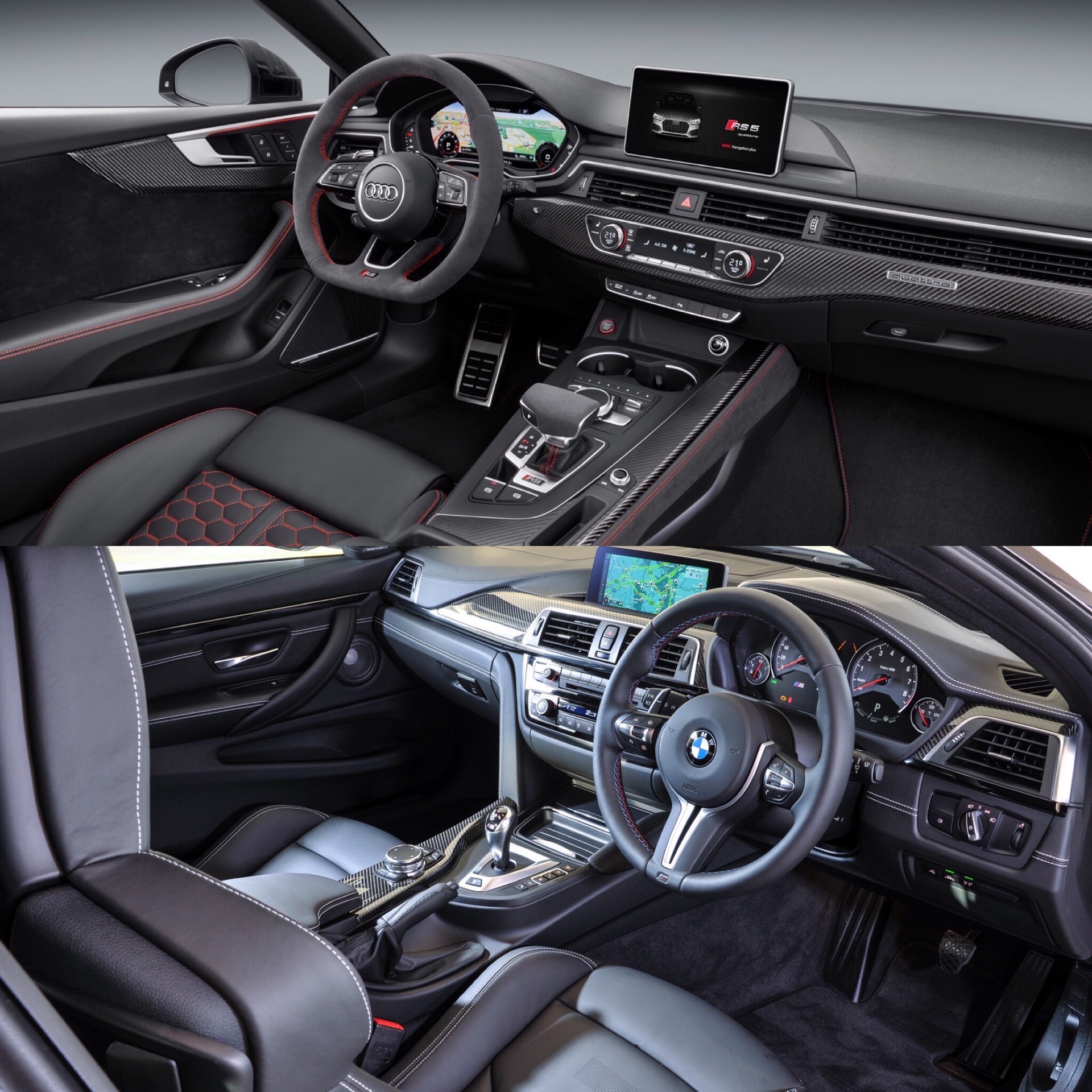 At the back, I think the BMW M4 takes it. Whereas the RS5’s face seemed more special, the M4 has a more special looking rump. Its quad exhaust pipes make it look like something special and powerful, whereas the two big ovular exhausts on the RS5 look like any bro-racer’s aftermarket exhaust system. Plus, the M4 has a little ducktail spoiler integrated into its rear deck, where the RS5 only has a seemingly tacked on lip.