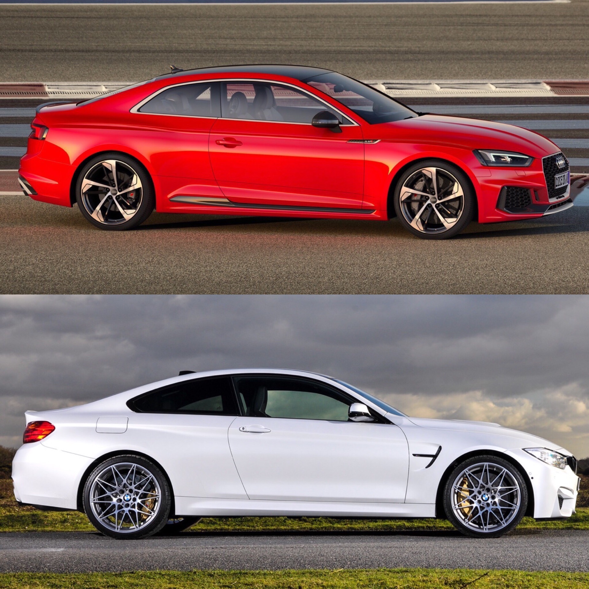At the most recent 2017 Geneva Motor Show, we saw the unveiling of the new Audi RS5 Coupe. Only in its second generation, the RS5 took a big leap forward and is now packing some very impressive specs. Gone, though, is its naturally-aspirated 4.2 liter V8, replaced by a smaller, turbocharged V6. BMW’s own M4 has a similar story, as its predecessor’s 4.0 liter free-breathing V8 was also replaced by a twin-turbo six-cylinder engine. In its new Competition Package form, the M4 competes very well with the new Audi RS5, so let’s see how they compare.