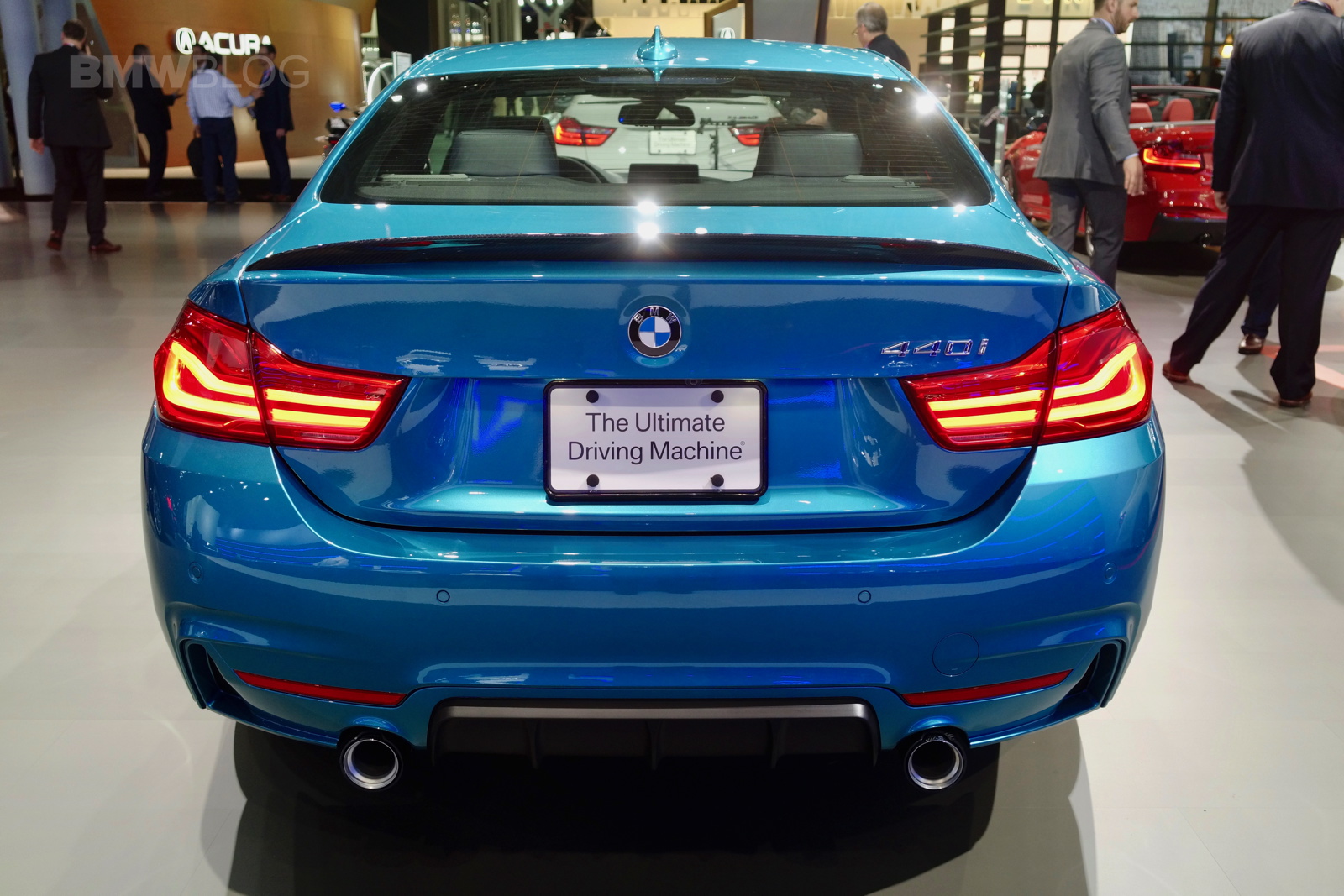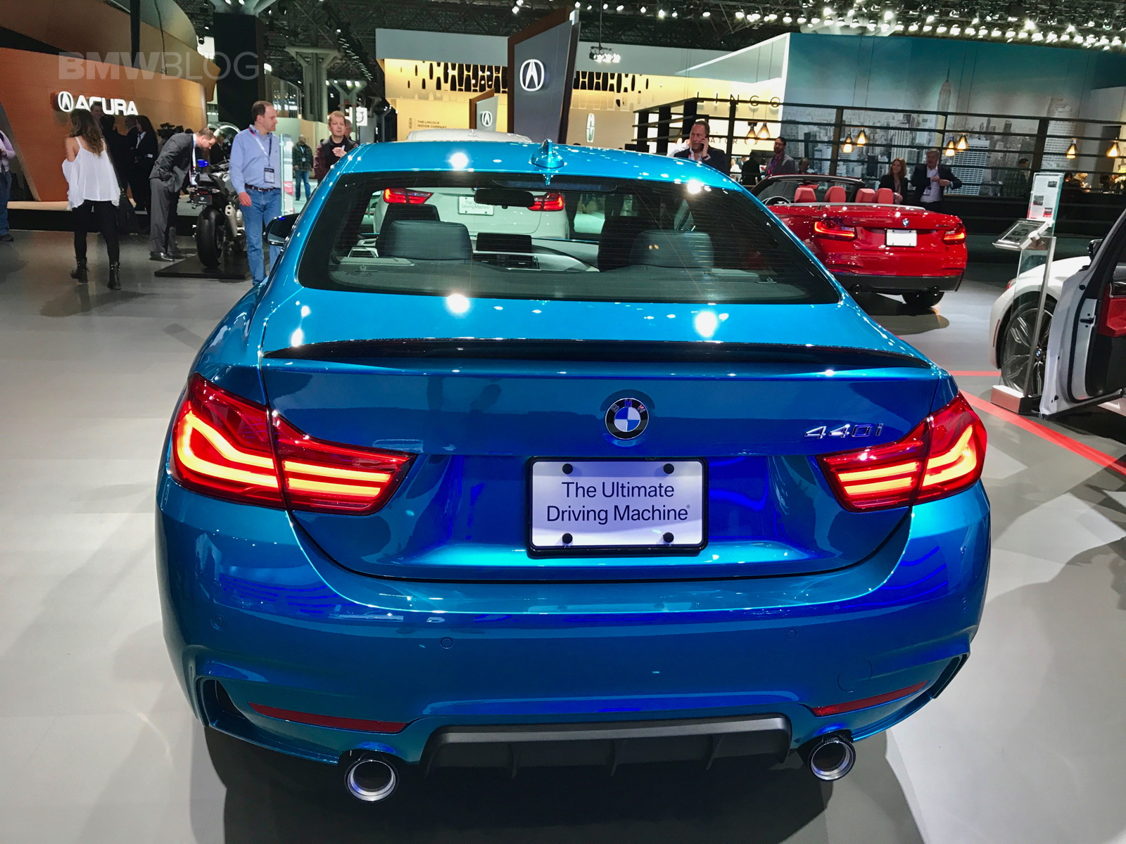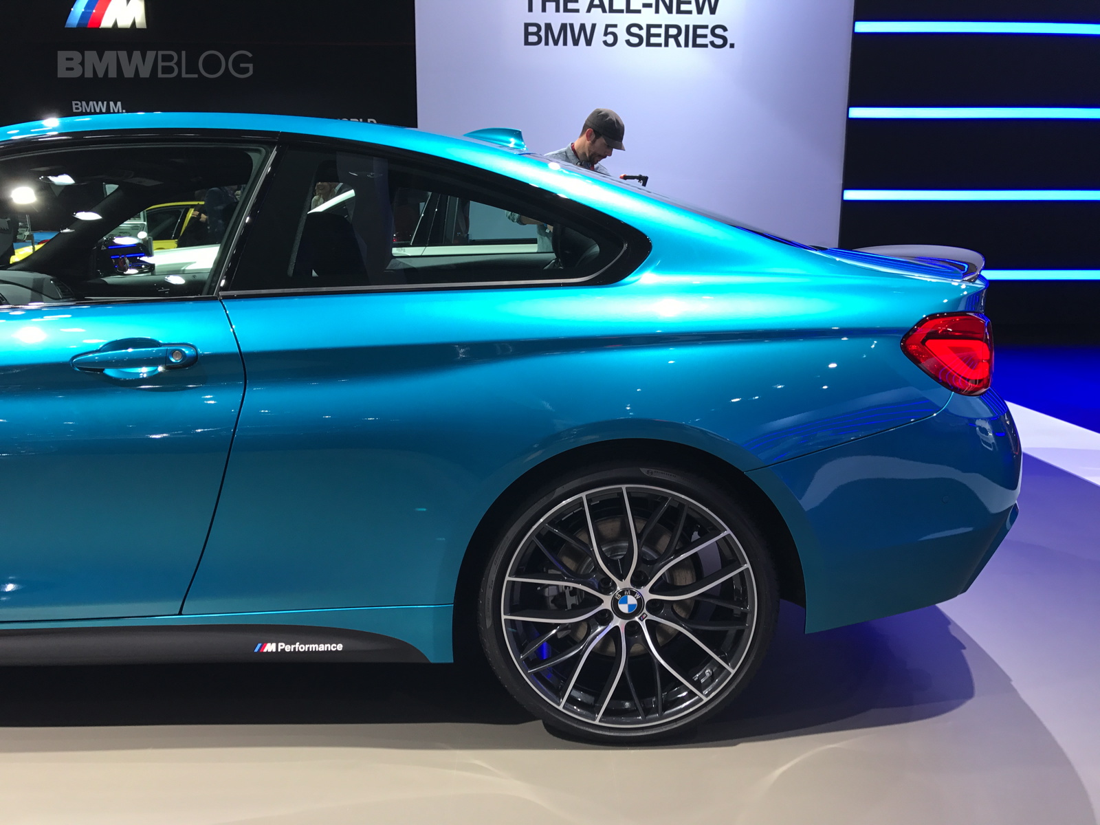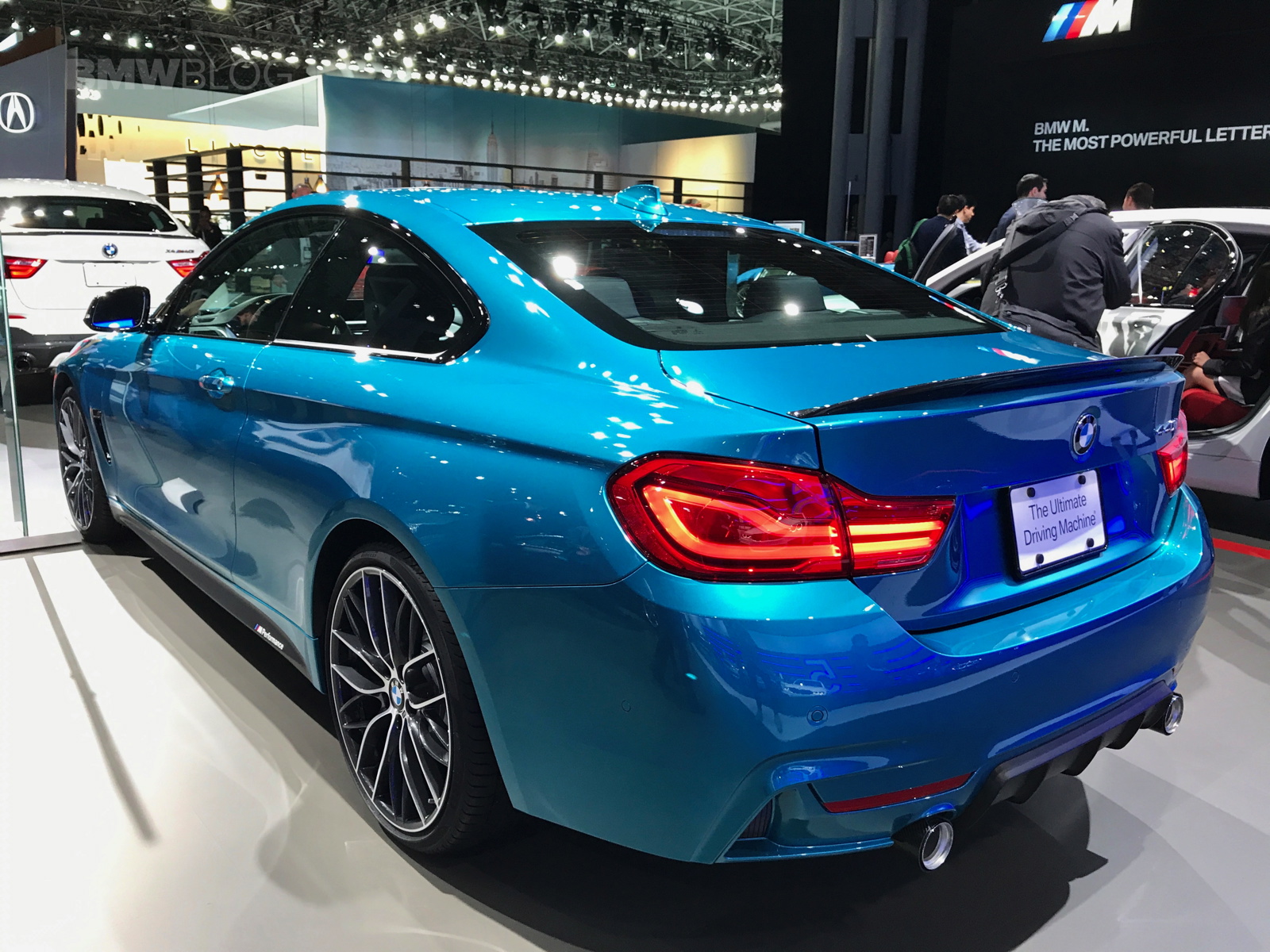 The facelifted BMW 4 Series shows up in New York this year with not only a refreshed design but also a new color – Snapper Rocks Blue. The turquoise blue color is featured by BMW on the top model 440i and it’s a head turner at the show. The 2017 BMW 4 Series Facelift focuses on lighting technology and interior changes, starting with the hexagonal daytime running light design, with hinged ridges, standard Bi-LED headlights; adaptive full-LED headlights with even better illumination of the street are offered for an extra charge.