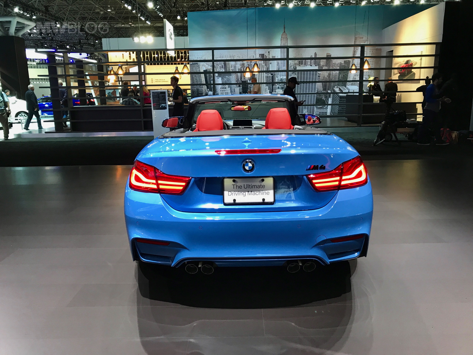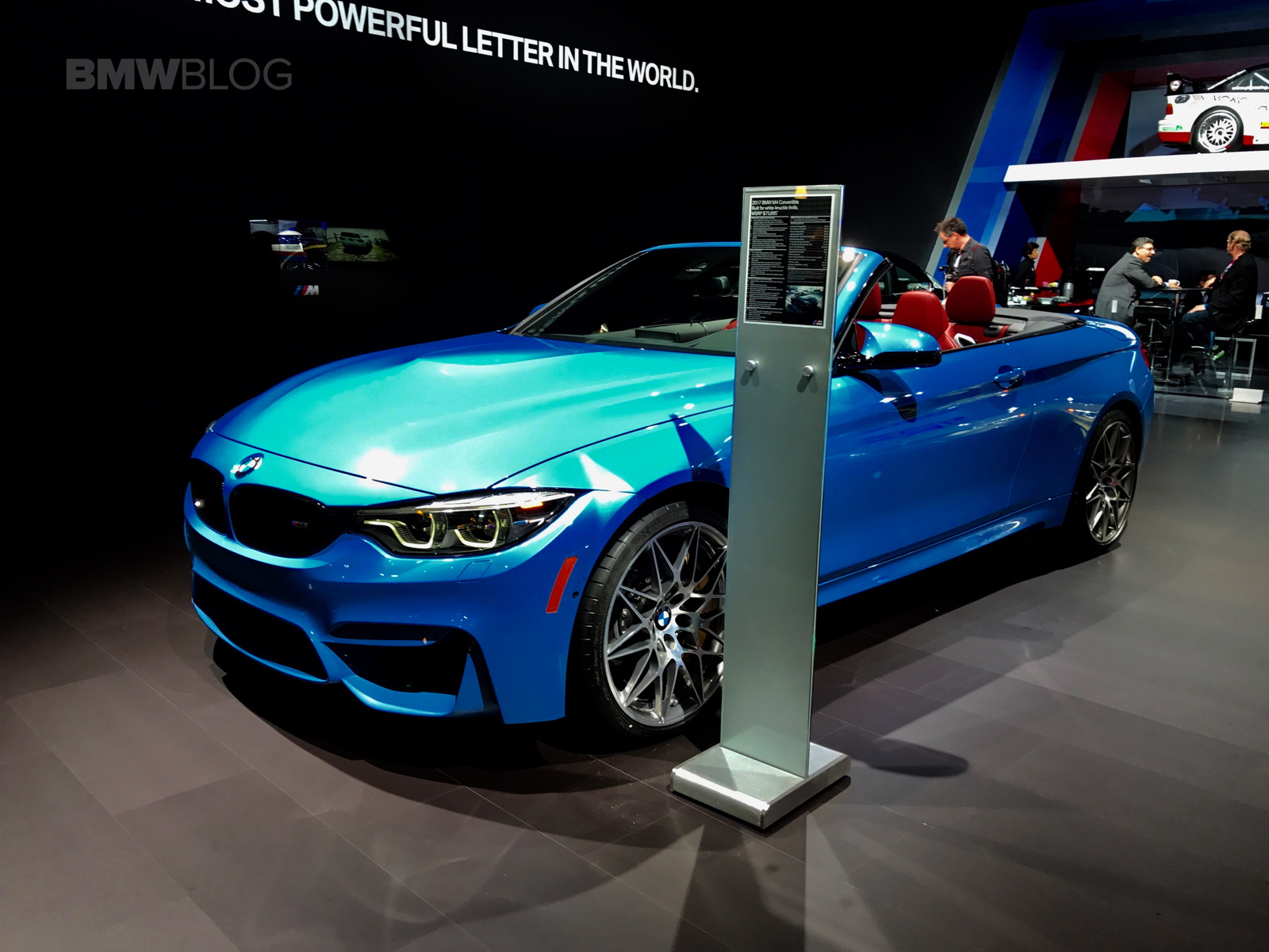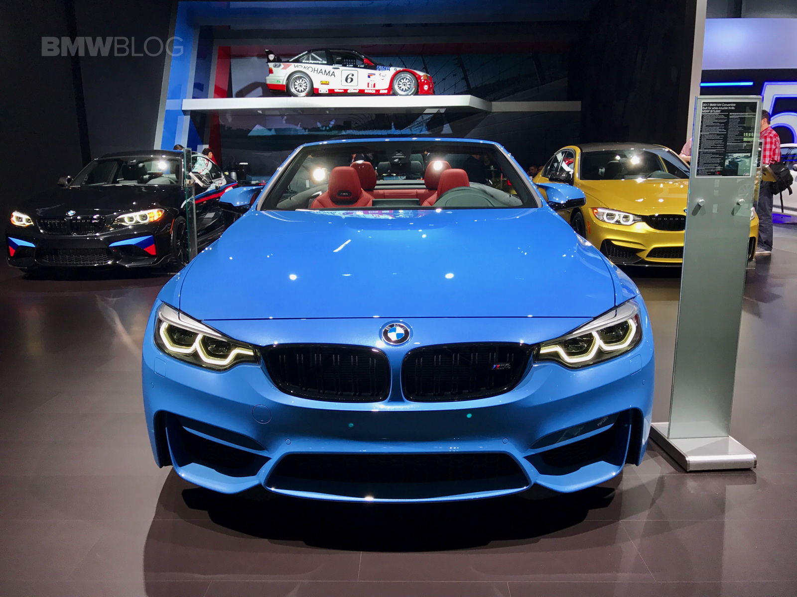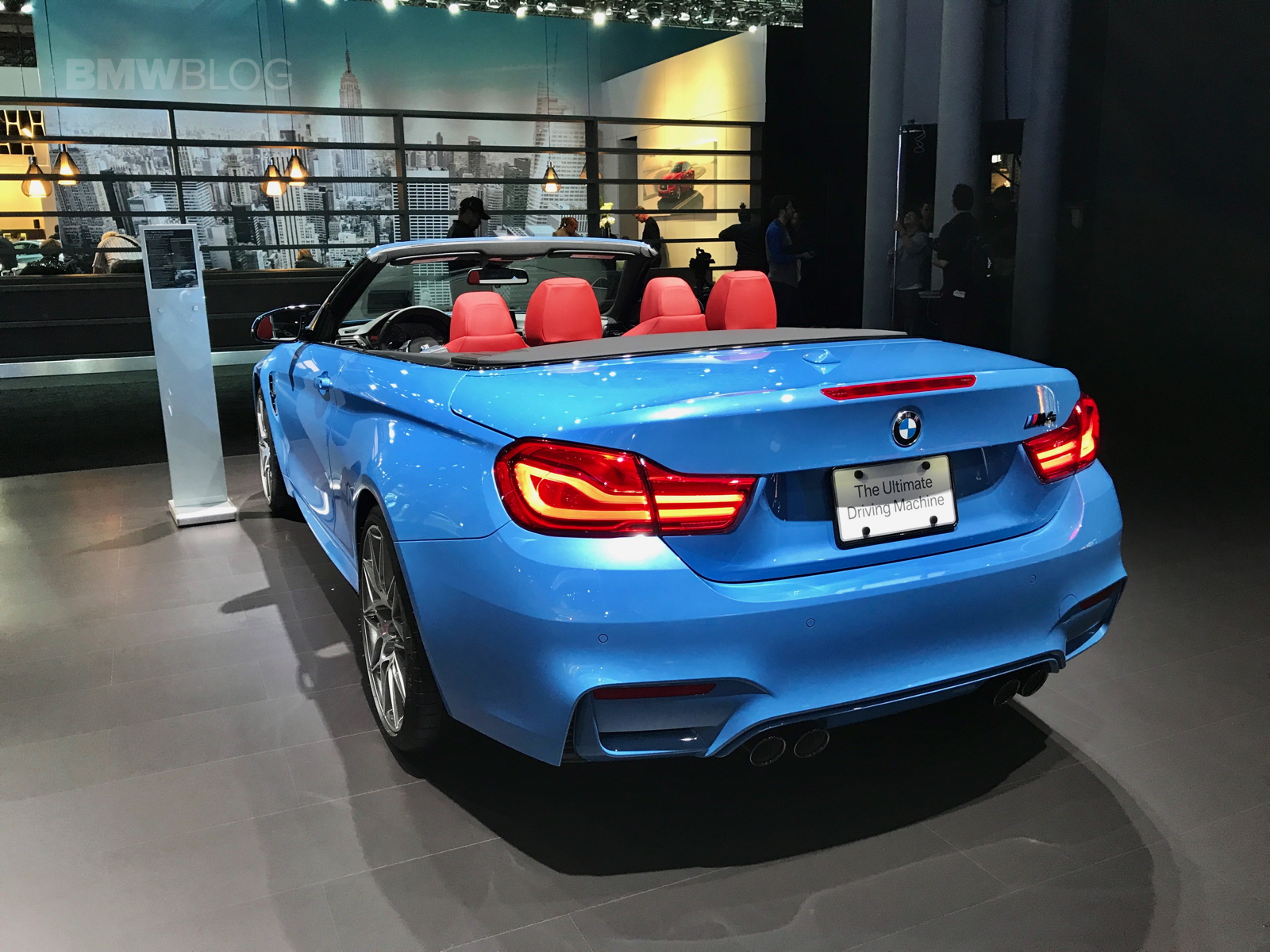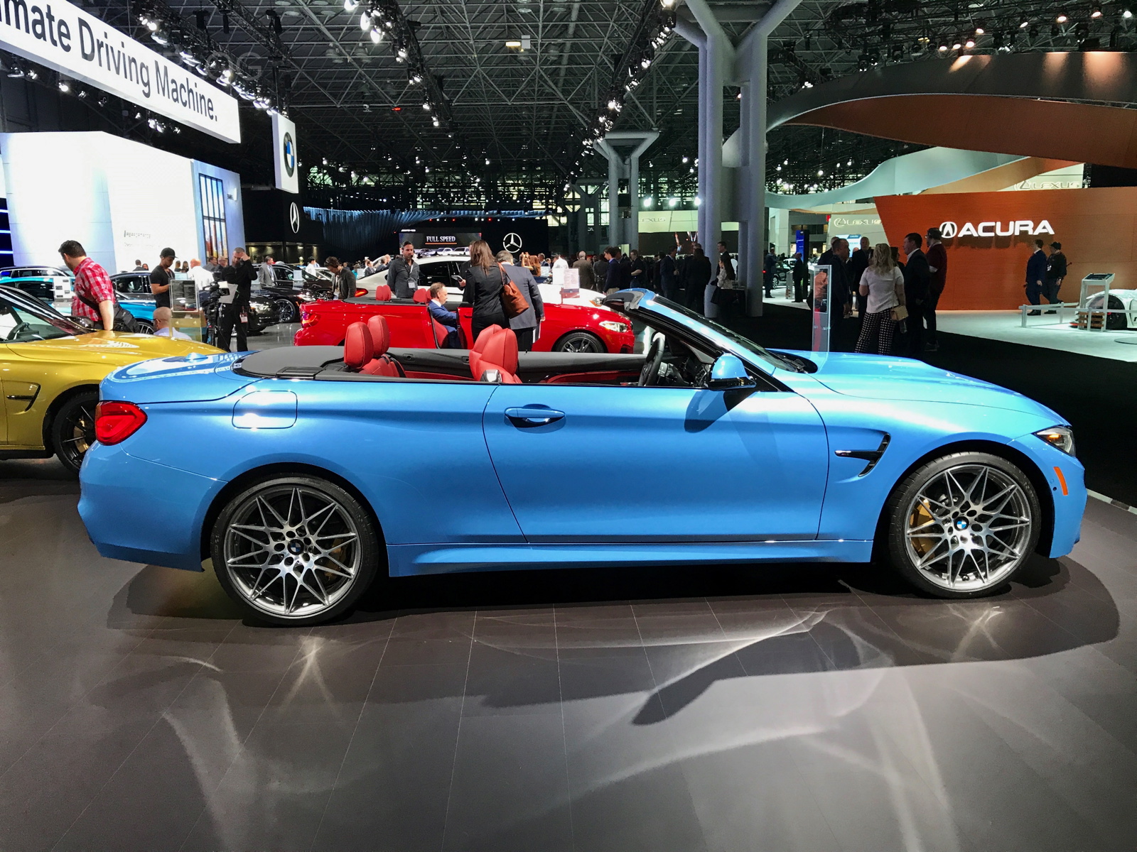 A $75,000 BMW M4 Convertible is just one of the main attractions at the BMW exhibit in New York. The beautiful open top is featured in the Yas Marina Blue color made famous by the F80 M3 Sedan, paired with a BMW Individual Extended Merino leather in red.