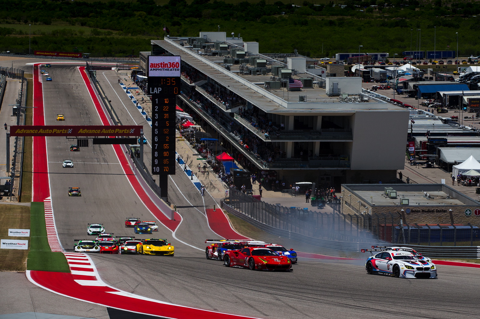 With the benefit of the pole position, Edwards led the field from the green flag into the first turn and Sims, from the third starting spot, moved up one position to follow his teammate at the front of the field. A scrum developed at the back of the GTLM field and multiple contacts among five competitors effectively reduced the race to a four-car event.