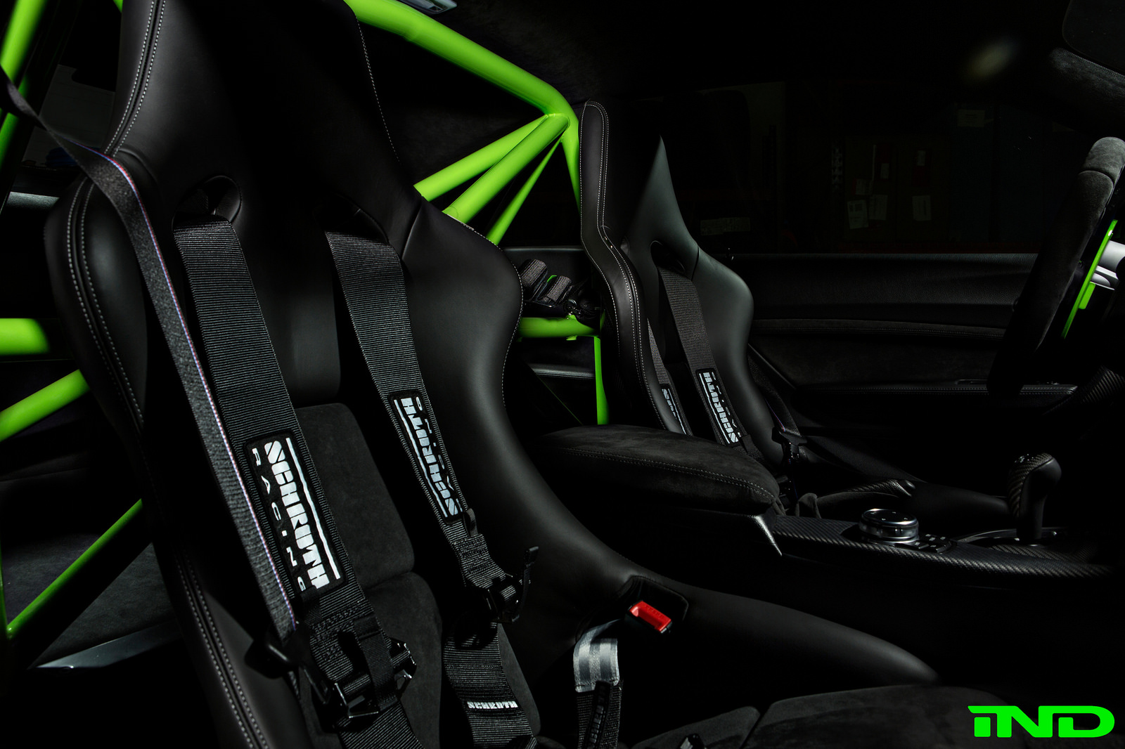 The M2 was delivered from BMW with a relatively austere interior, so IND got to work. They aimed to integrate a host of original BMW Performance and BMW Motorsport components in order to pursue an “OEM track model” feel comparable to the M4 GTS. Two items would become centerpieces for the theme of their M2 interior: the BMW GTS European seats, and the BMW Motorsport roll bar found in the MotoGP pace car.