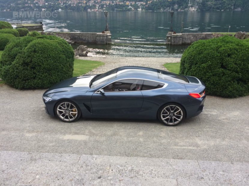 The new 8 Series Concept features lines that flow like water over its Barcelona Gray Liquid body. Creases along the hood and large side air intakes give the concept a fluid look. Bold arches framing 21-inch alloy wheels hint at the car’s rear-wheel-drive athleticism.