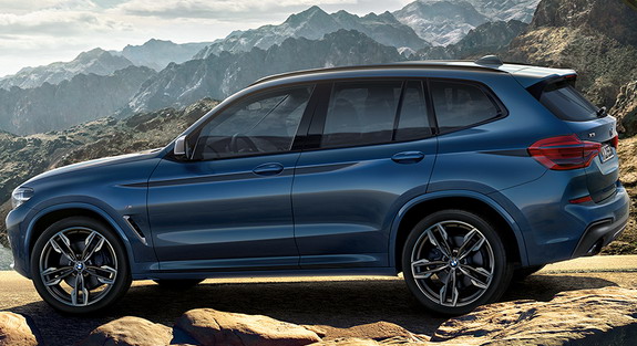 BMW X3 with the M Sport Package features the typical M aerodynamic design cues, along with blue-painted callipers and a new wheel design. Pythonic Blue is also an exclusive color for the X3 M40i and the M Sport Package.