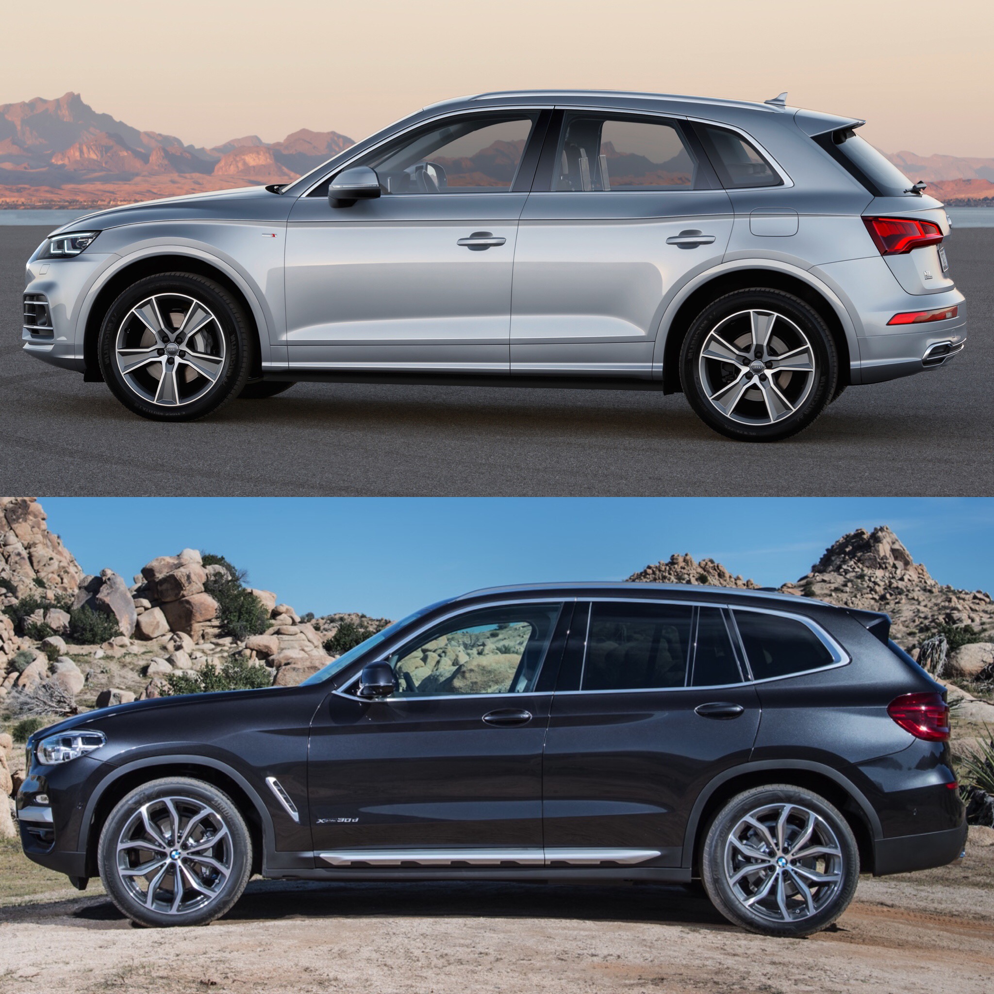 Now that BMW has premiered its new X3, we thought it a good idea to compare it to the new Audi Q5. Obviously, we haven’t driven the new X3 yet so we can’t compare how the two will drive. What we can compare is how they look and what sort of specs they both have.
