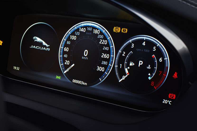 Inside, it’s typical Jaguar. The steering wheel, shift level, infotainment screen and basically everything else are all seen in other Jags. That’s not bad, though, as it’s still very handsome and looks smartly laid out. We’ll reserve judgement on quality and infotainment usability, as we obviously haven’t even sat inside yet, but so far it looks good.