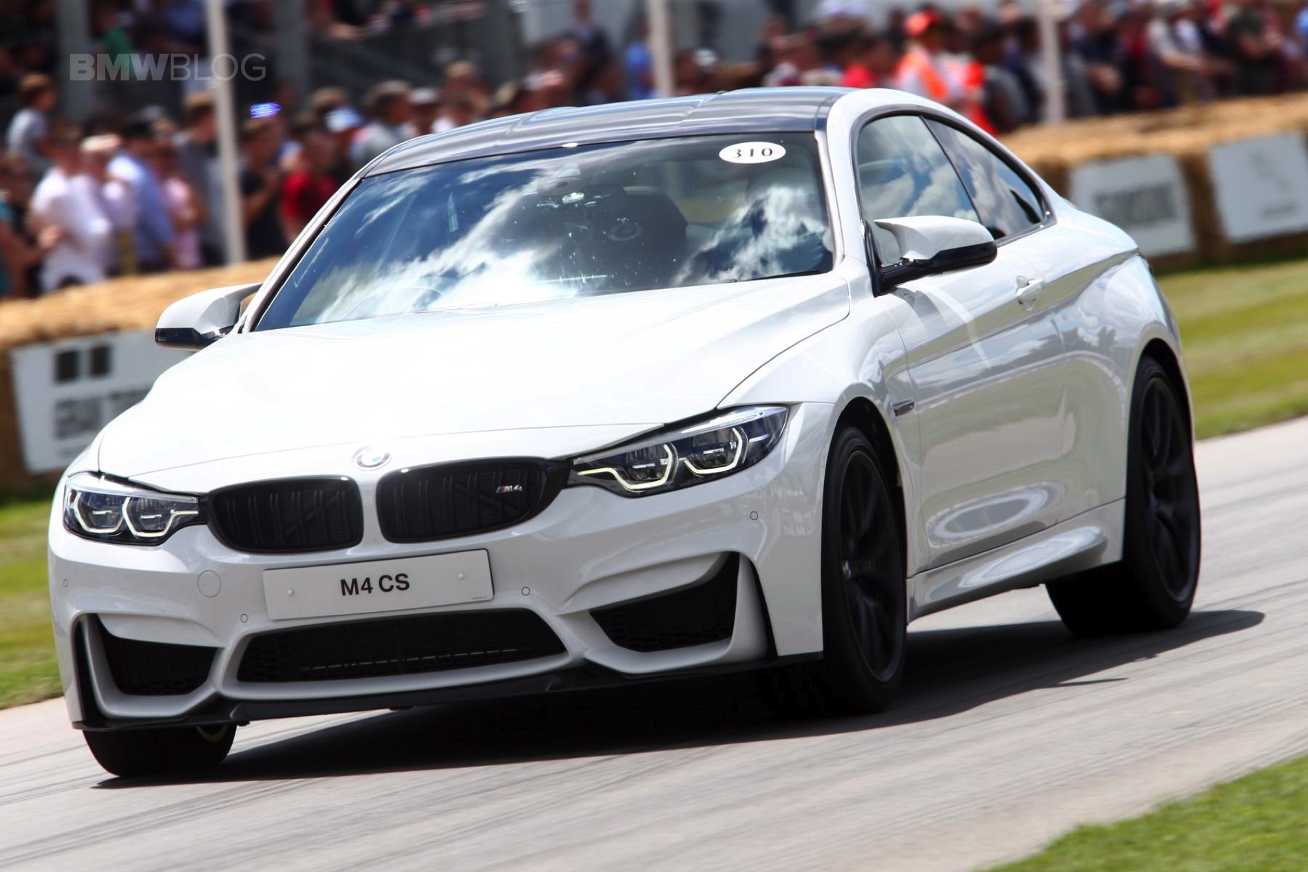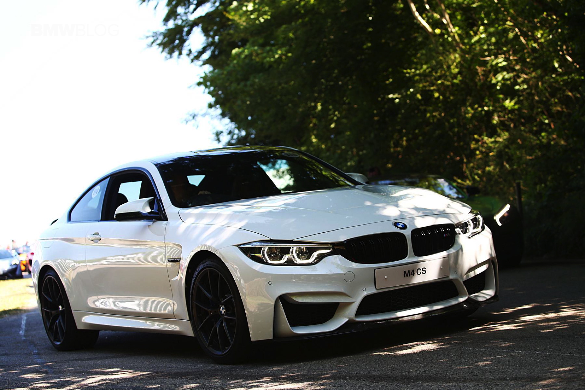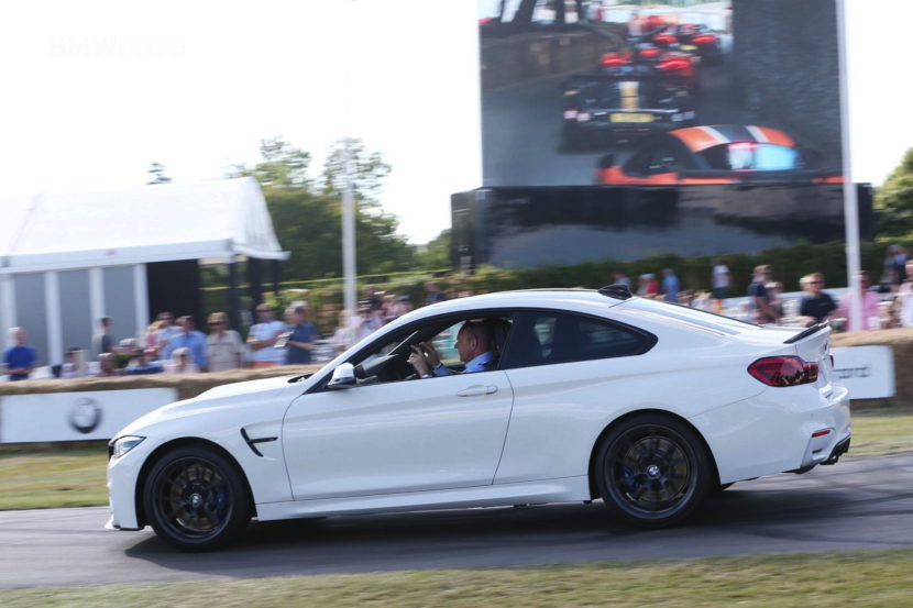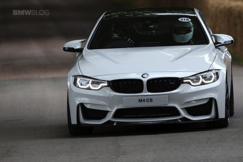 The BMW M4 CS sits right smack in the middle of the M4 Competition Package and the track-ready M4 GTS, and to many, it’s what the standard M4 should have been. The super sporty M4 was unveiled in May and it’s rumored to be produced in fairly limited quantities – 3,000 globally. There are three colors specific to the BMW M4 CS as factory colors, not Individual options. The first is the San Marino Blue Metallic, then the Lime Rock Grey Metallic and a very special Frozen Dark Blue II, the latter of which is a matte finish and will only be available on a limited number of cars. But customers can order the M4 CS in standard colors as well, just like this Alpine White model which was unveiled by BMW UK at the annual Goodwood Festival of Speed.