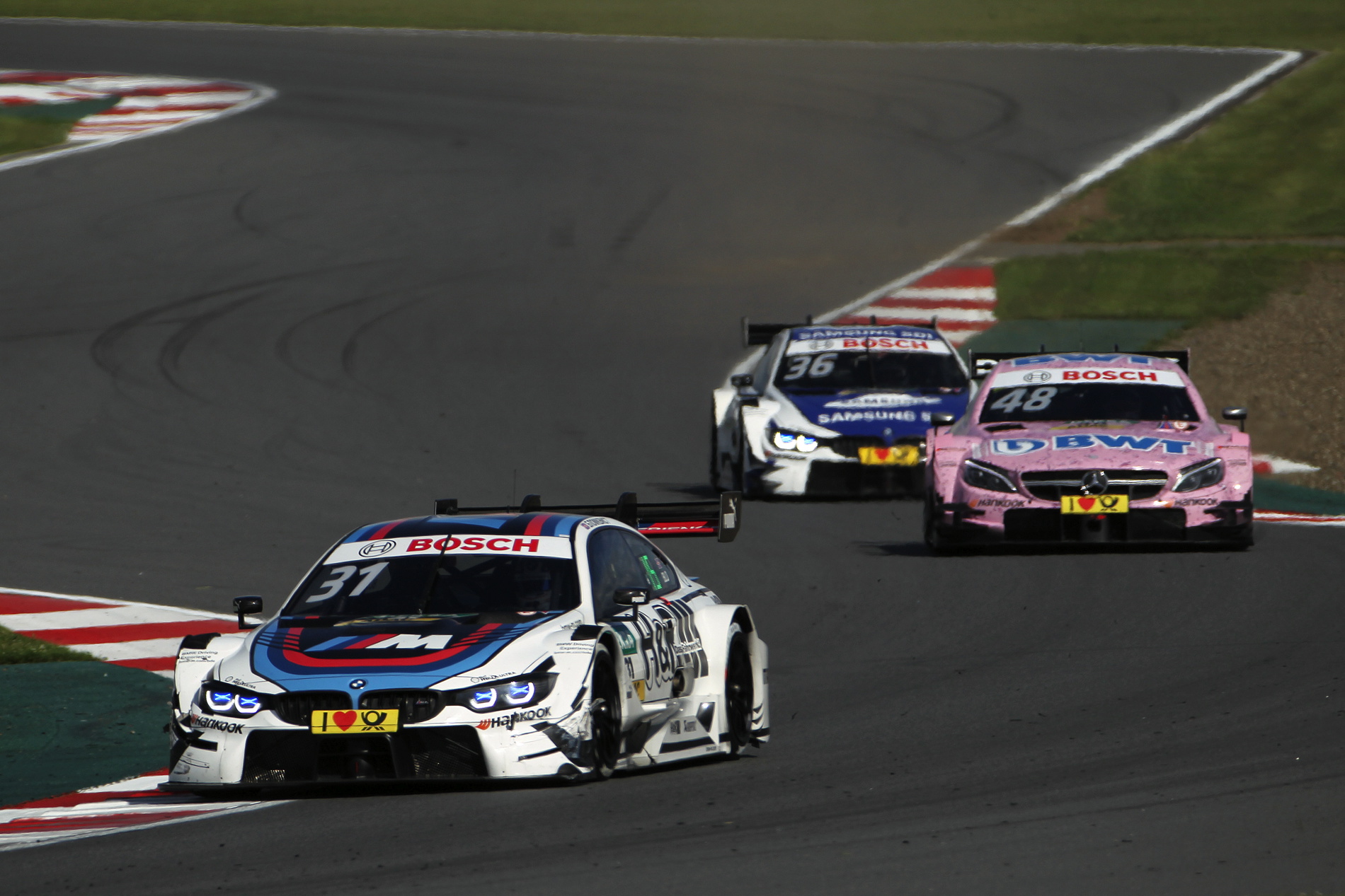 In a turbulent opening phase, Augusto Farfus, Marco Wittmann and Timo Glock settled into third, fourth and fifth place. During this Glock was embroiled in a close battle with Mattias Ekström (SWE, Audi), which saw him receive a warning. On lap three, as Farfus attempted to move into second place, he came into contact with Mike Rockenfeller (GER, Audi) and was forced off the track. The Shell BMW M4 DTM suffered damage, Farfus then dropping to the back of the field after the early pit stop. Maxime Martin and Tom Blomqvist also fell down the order after early stops. At the end of lap 11, Glock overtook Wittmann in the battle for third place. The reigning champion regained the position after the round of pit stops. Wittmann was then involved in a fierce duel with Robert Wickens (CAN, Mercedes). He initially had to let the Canadian pass, but regained the podium position in the closing stage of the race. Glock finished fifth, Spengler in 12th missed out on the points, as did Martin in 16th place. Farfus and Blomqvist returned their damaged cars to the pits early. The win went to René Rast.