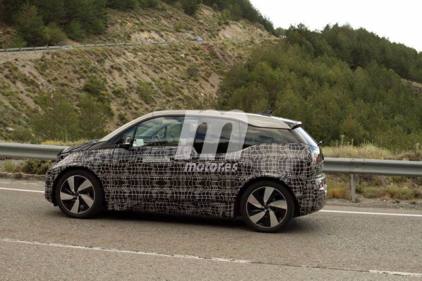 Our friends at Motor.es are bringing us a new set of spy photos showcasing the upcoming 2018 BMW i3 S. Along with a style facelift, the i3 lineup will also receive a new model – i3 Sport – which aims to deliver a more dynamic ride aboard the electric vehicle. The front-end will feature a re-profiled front bumper housing new slim line fog lamps in place of the round units used today, altered LED headlight graphics, revised sills underneath the doors, reworked tail-light lenses, a deeper and reshaped rear bumper, new alloy wheels and a wider range of optional two-tone exterior colour schemes. The body kit has also been extended by a few millimeters while the standard tires have been enlarged as well, for a beefier look.