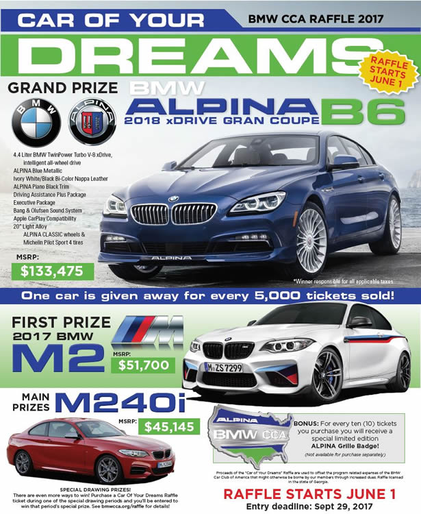 Every year, the BMW CCA holds an annual raffle, which acts as a sort of fundraiser for the club so they can put on all of the great events that they do throughout the year. This year, the annual raffle is even more exciting than usual. That’s because the Grand Prize is something incredibly special and incredibly rare — a 2018 BMW ALPINA B6 xDrive Gran Coupe.