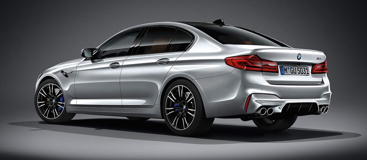 The design of the new M5 is an evolution of the previous F10 model and was built upon the lightweight architecture of the current G30 5 Series. Compared to the standard business sedan, the front bumper has larger air intakes and sharper lines, the roof is carbon fiber, and M mirrors were fitted to it.