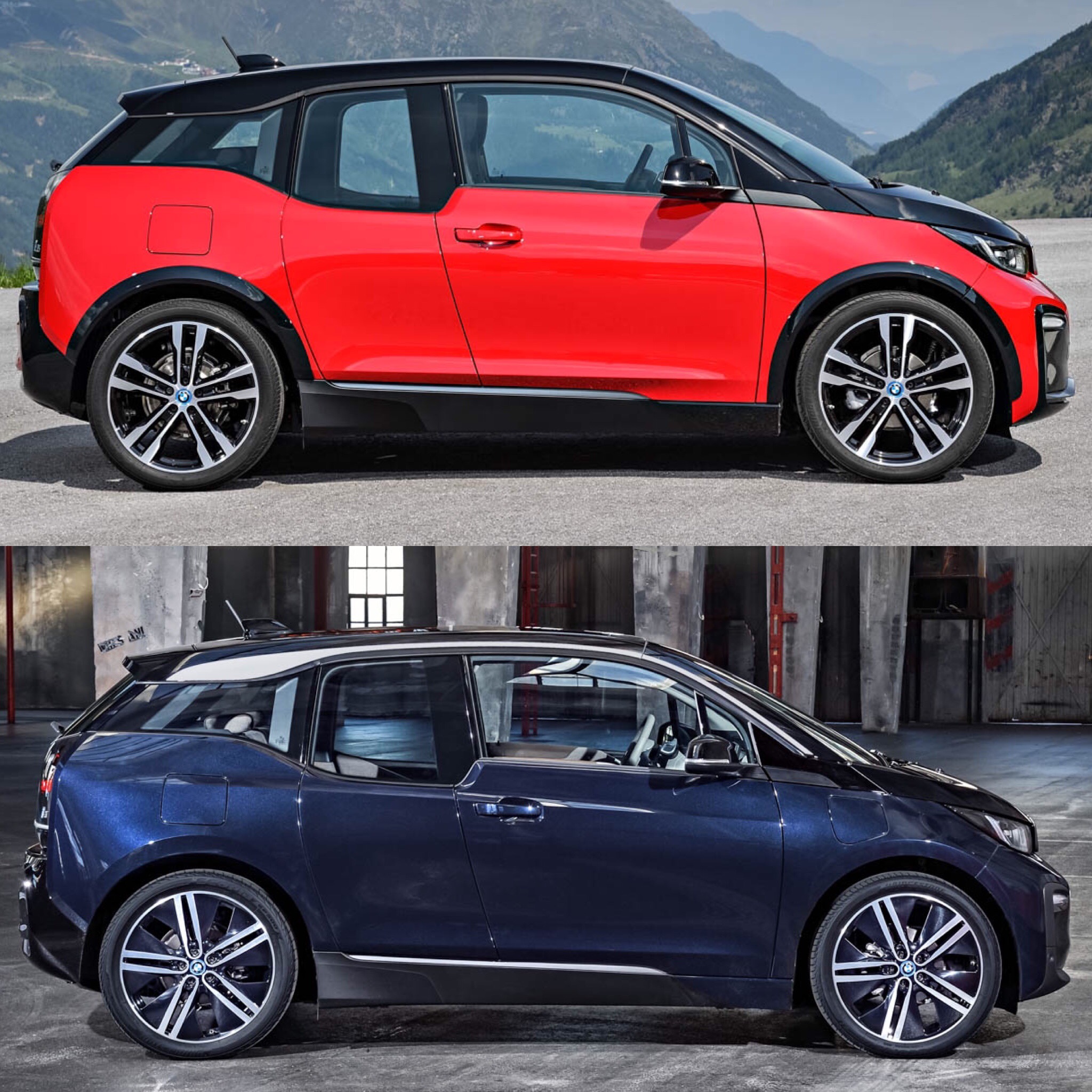 Also, that silver trim that runs the length of the roof on the standard car is black. It looks much better in black, even if it doesn’t make it look any different from the pre-LCI car. But it looks better than the silver streak of hair that the new standard i3 seemingly has.