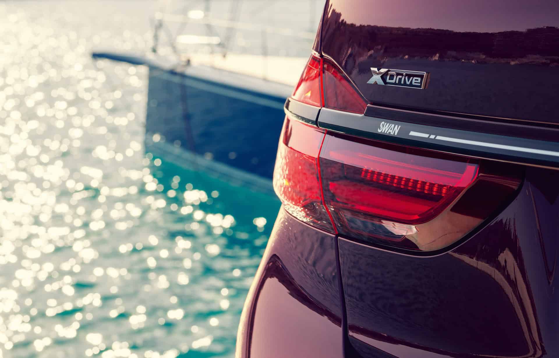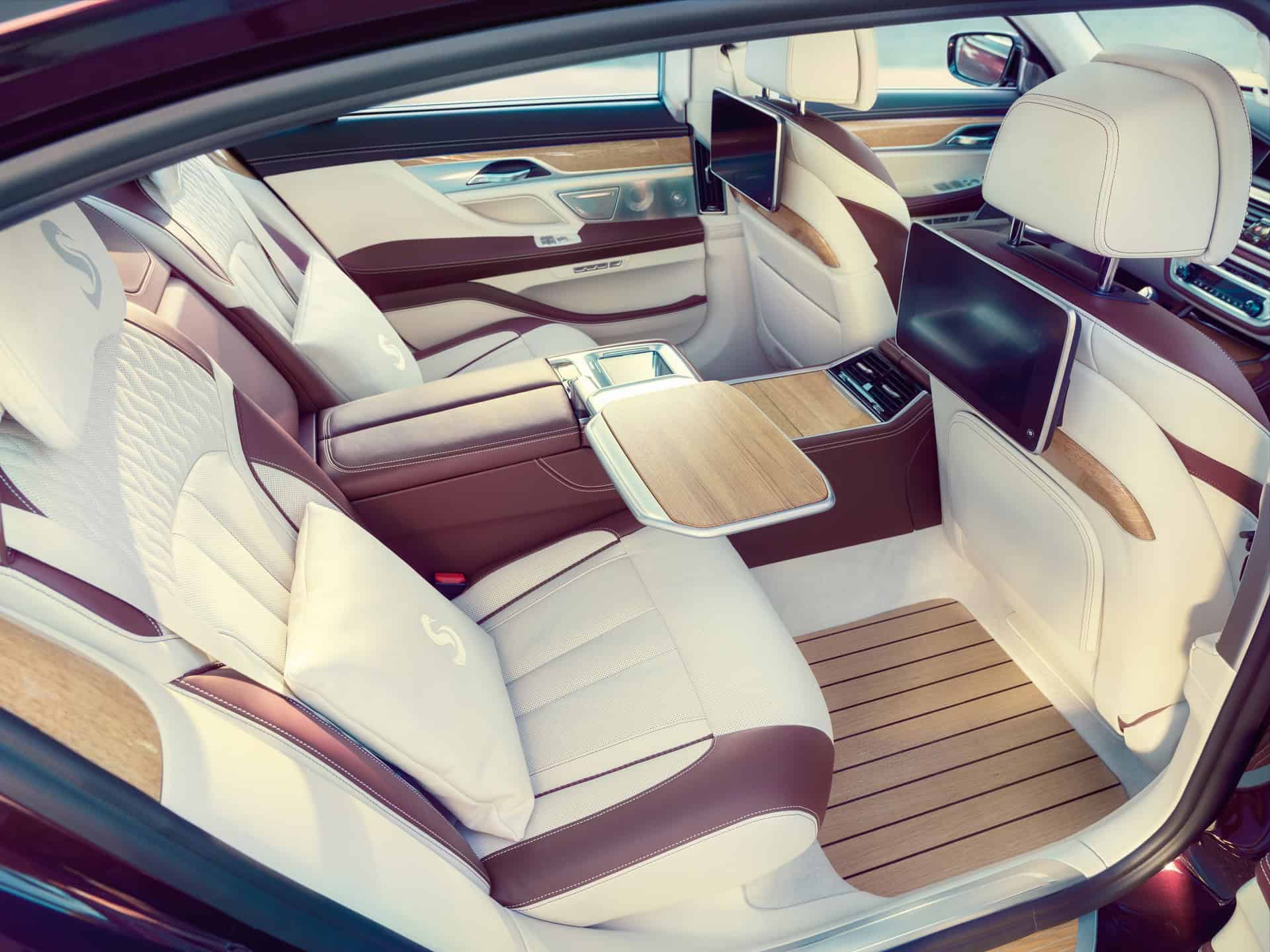 The interior trims, entry sills and floor mats are also made with teak and have been produced by Nautor’s Swan as the Finnish brand’s insignia is noticeable. The Nautor’s Swan signet is stitched into the headrests and cushions. It also adorns the sun visors and interior trims made of European oak on the driver’s side and the central console. The cooperation between the two brands is also apparent on the exterior. The brake calipers on the BMW Individual M760Li, which are exclusively finished in the same color as the car, each bear a raised Swan logo, which is manufactured in an extra procedure. The boot lid of the car is also decorated with the Nautor’s Swan arrow, which is usually to be found on the side of the yachts.