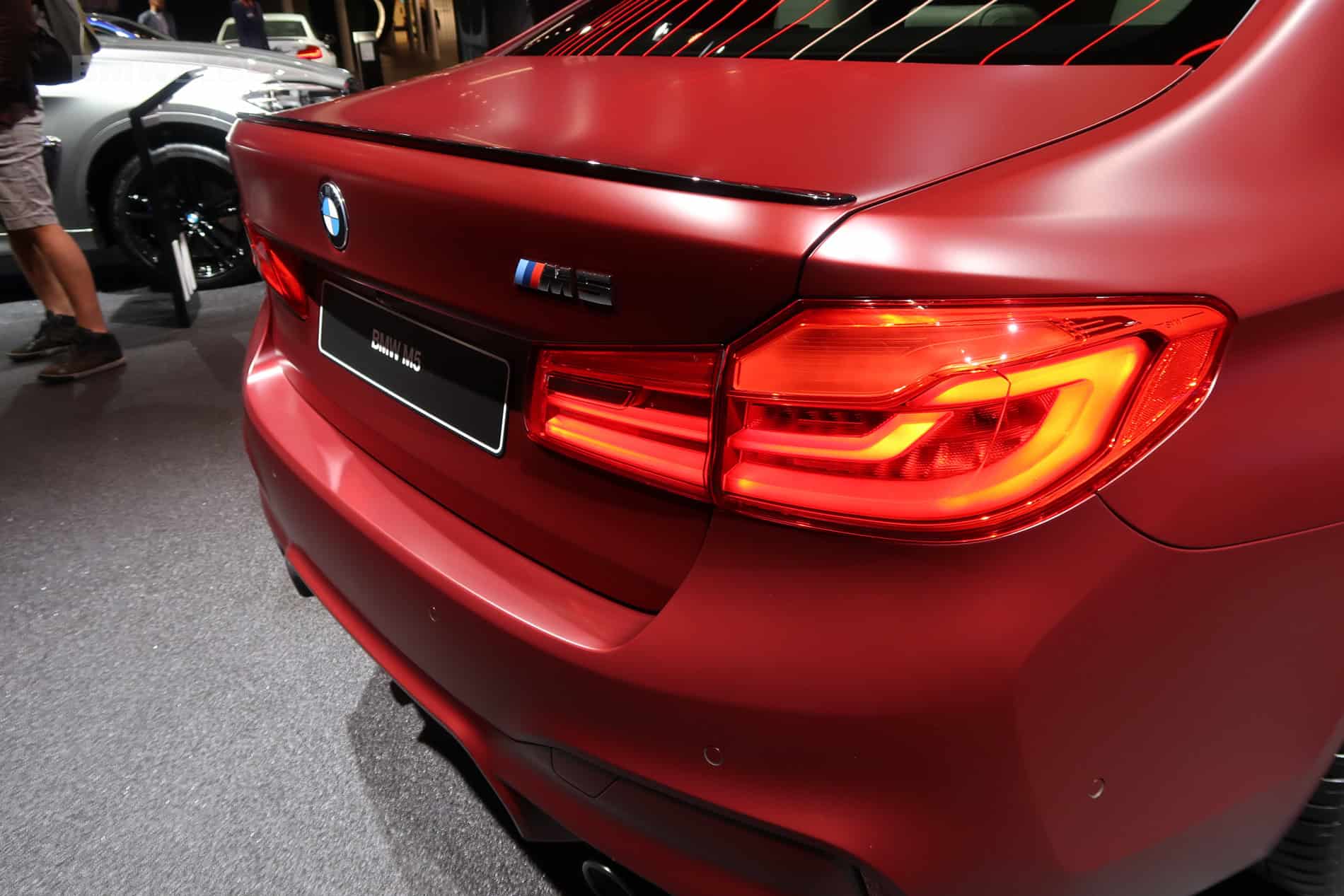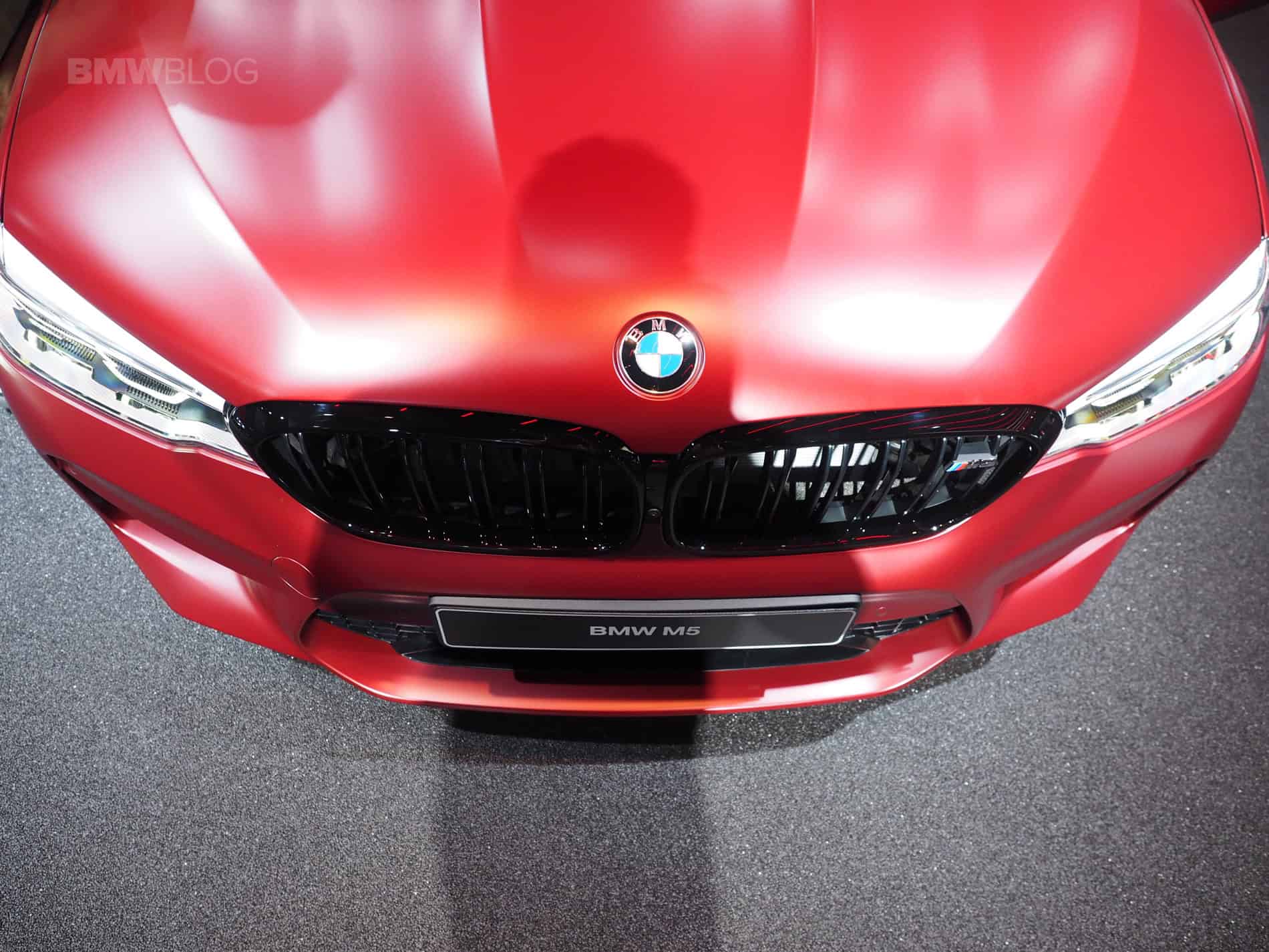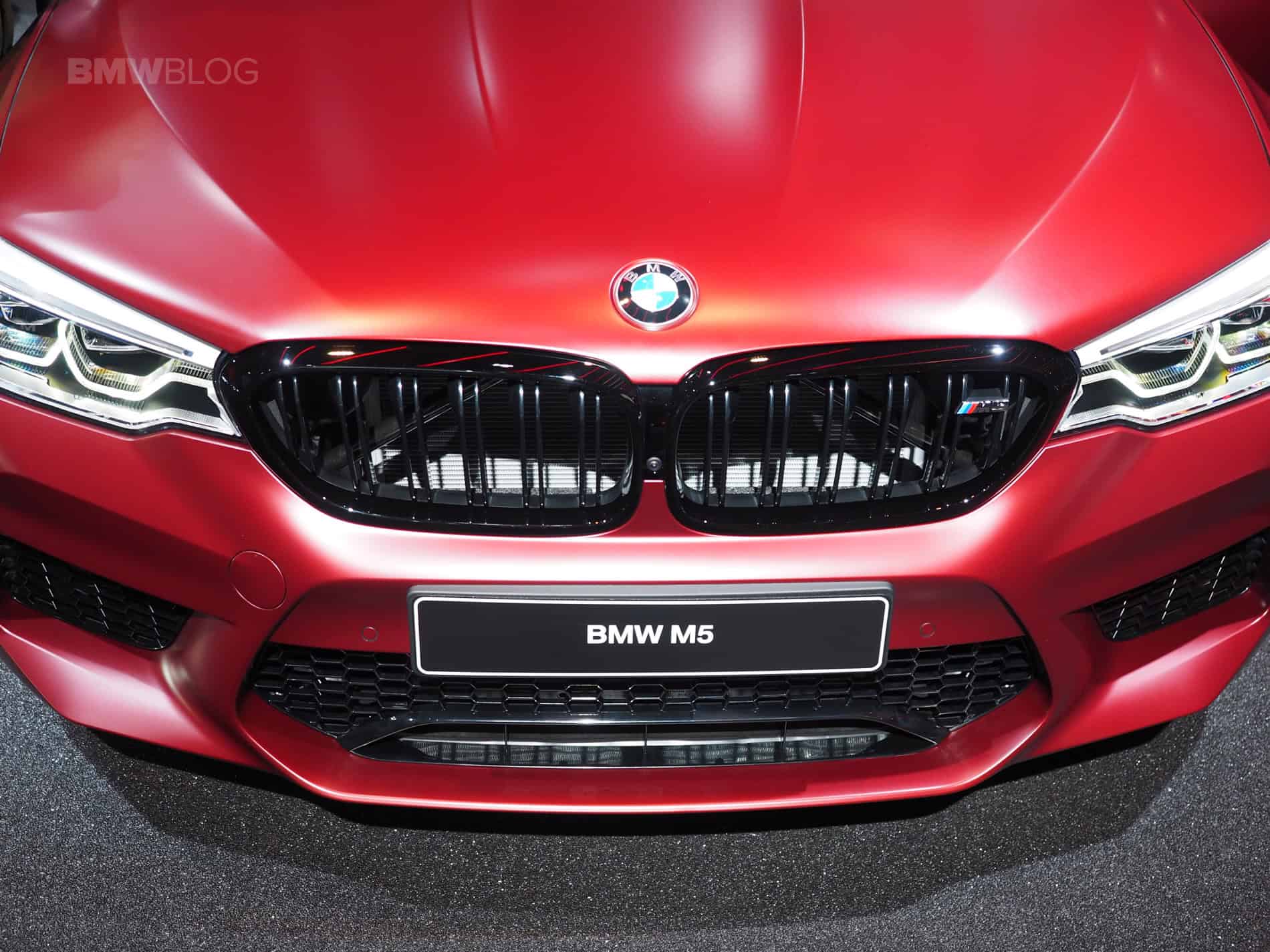 Those who spring for the First Edition models will get some special touches to their M5. Frozen Dark Red Metallic paintwork (as seen in these photos) with Individual high-gloss Shadow-Line trim make it really stand out. Its matte red paint looks really cool, if a bit shouty, and the black accents really make it look aggressive. Everything from the Kidney Grilles and M fender vents to the exhaust pipes will be high-gloss black, which looks really good against the matte red paint.