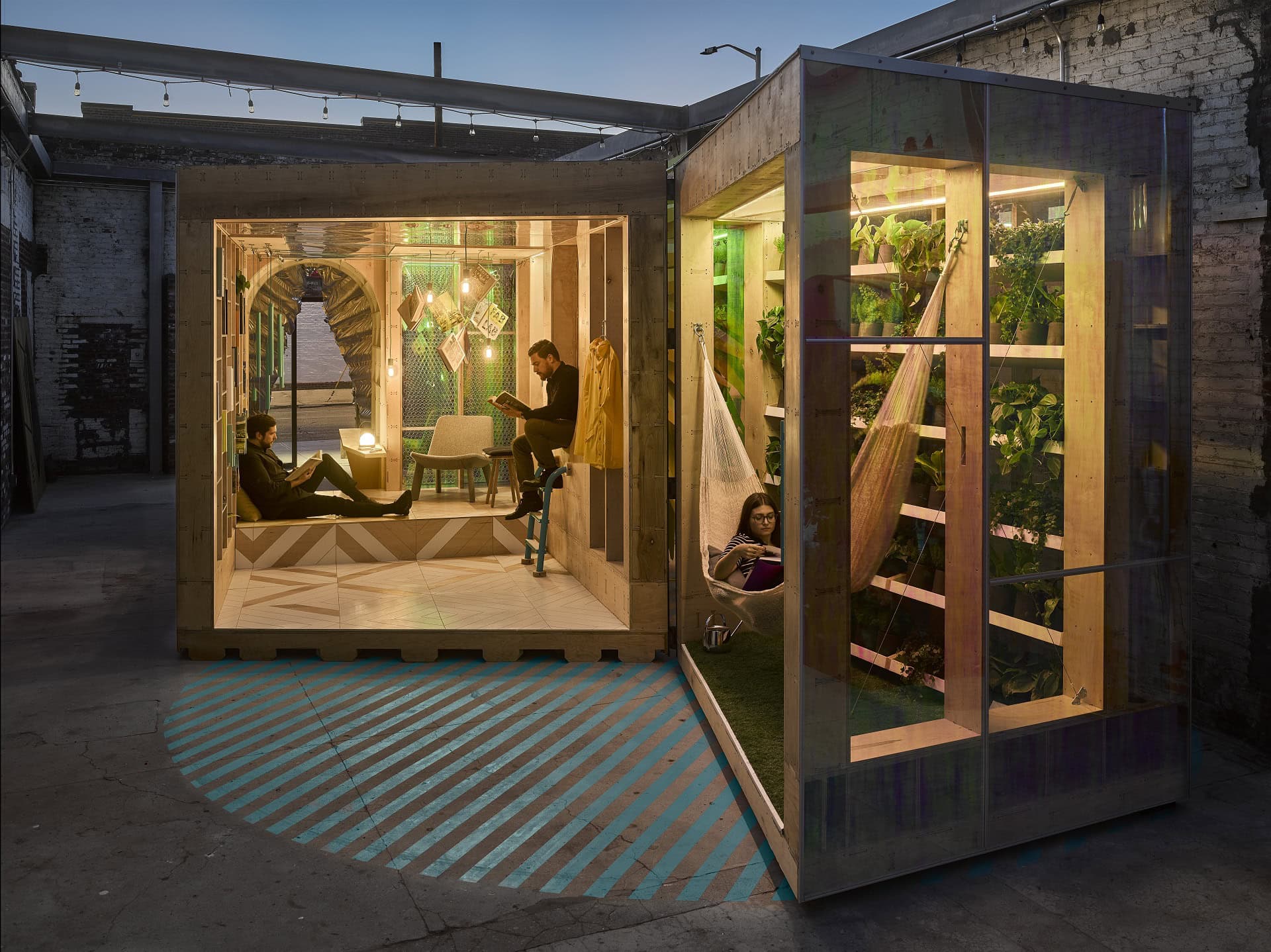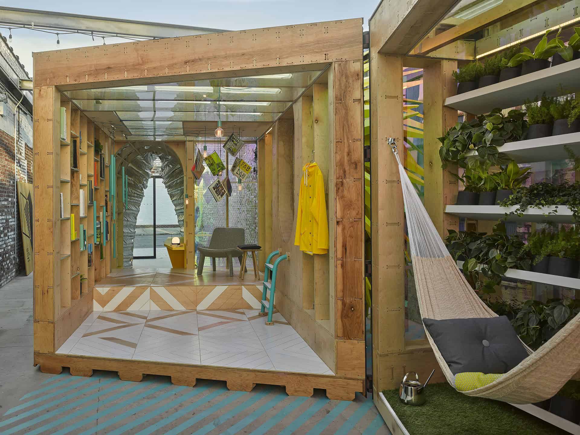 As the Urban Cabin moves locations, the MINI Living design team partners with architects in each city to learn and explore what is unique about their hometown. These local architects then create Kitchen and Experience rooms in each city’s Urban Cabin. One of today’s biggest challenges is the global crisis of forced migration, which has reached a record high. While this crisis involves numerous complex issues, at its core is a question of home. Millions of people from all over the globe call New York City home, making it one of the most culturally diverse cities in the world. The collaboration between MINI LIVING and Bureau V at A/D/O in New York City addresses the question of “home” through the URBAN CABIN, which creates a respite for the urban citizen, providing a sense of comfort and humor.
