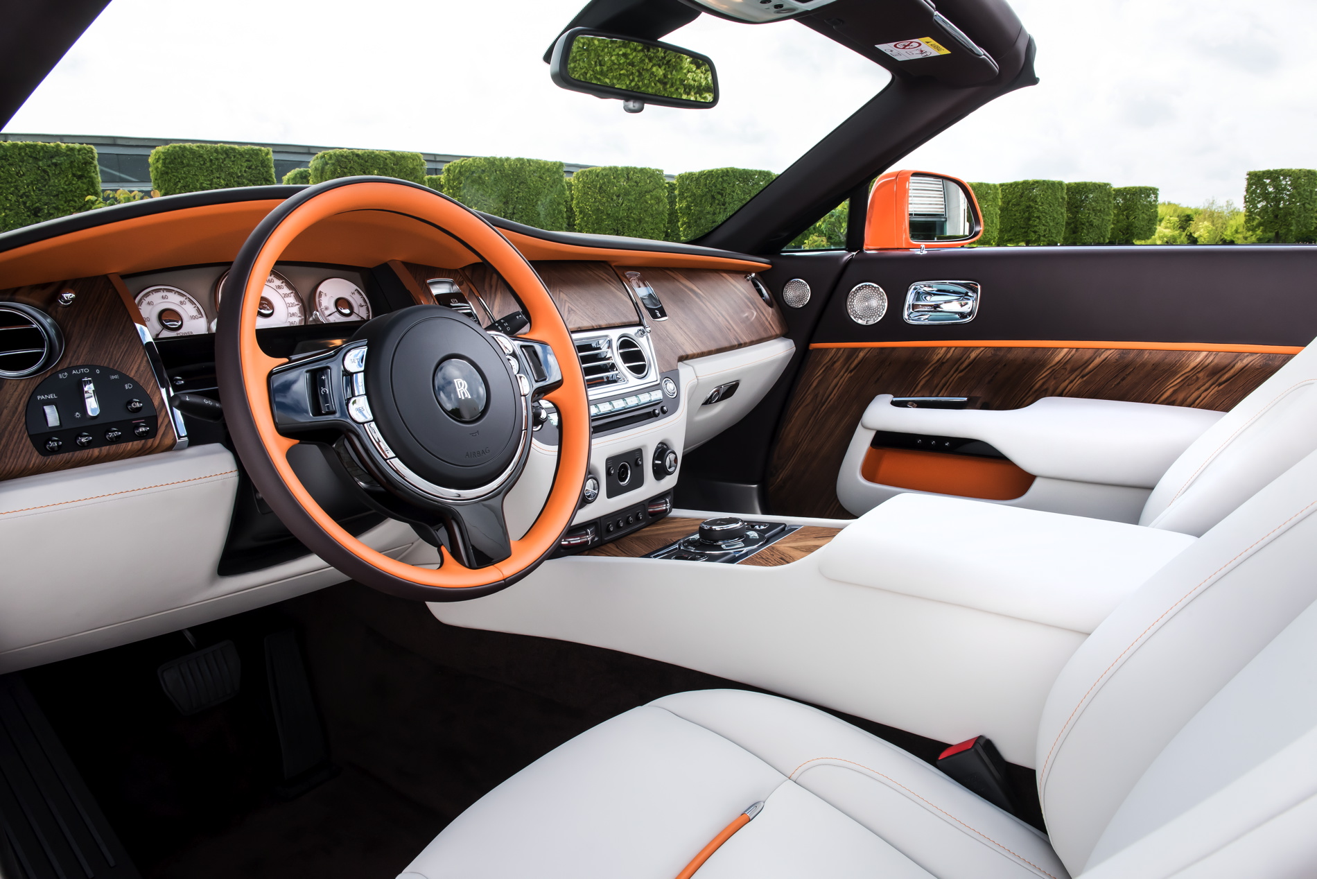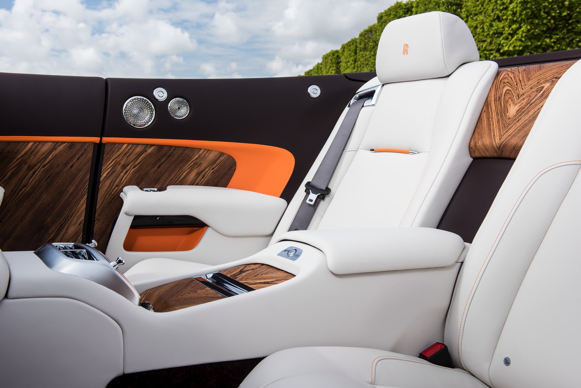 The ‘Lago di Como Dawn’ features a crisp Selby Grey and Black interior of hand-sewn leather, complemented by a brushed aluminum fascia. The ‘Saint-Tropez Dawn’ has an equally sumptuous interior of Seashell leather, accented with bright orange Mandarin and sumptuous chocolatey Dark Spice, with a fascia and doors paneled in rich Canadel open-pore wood.