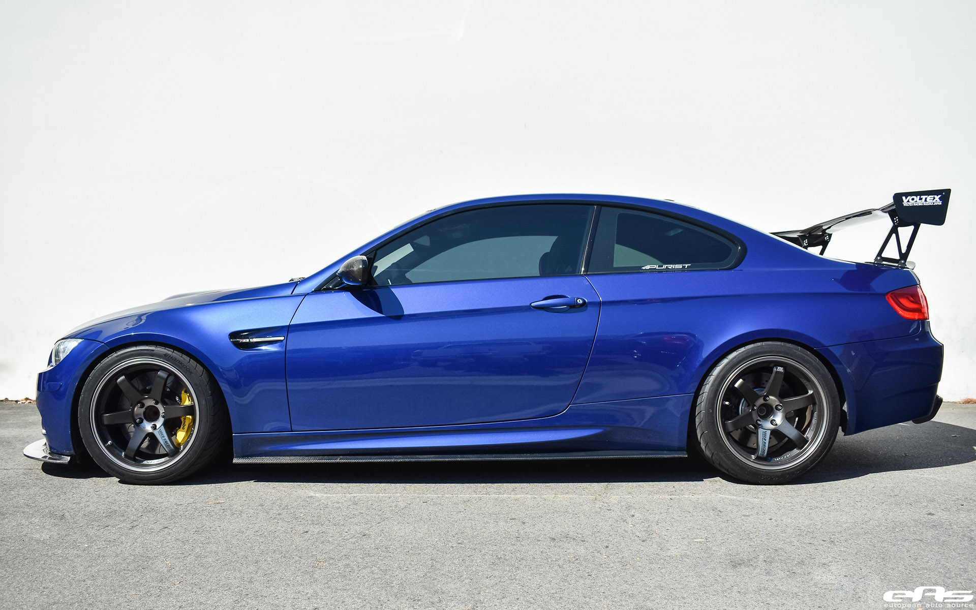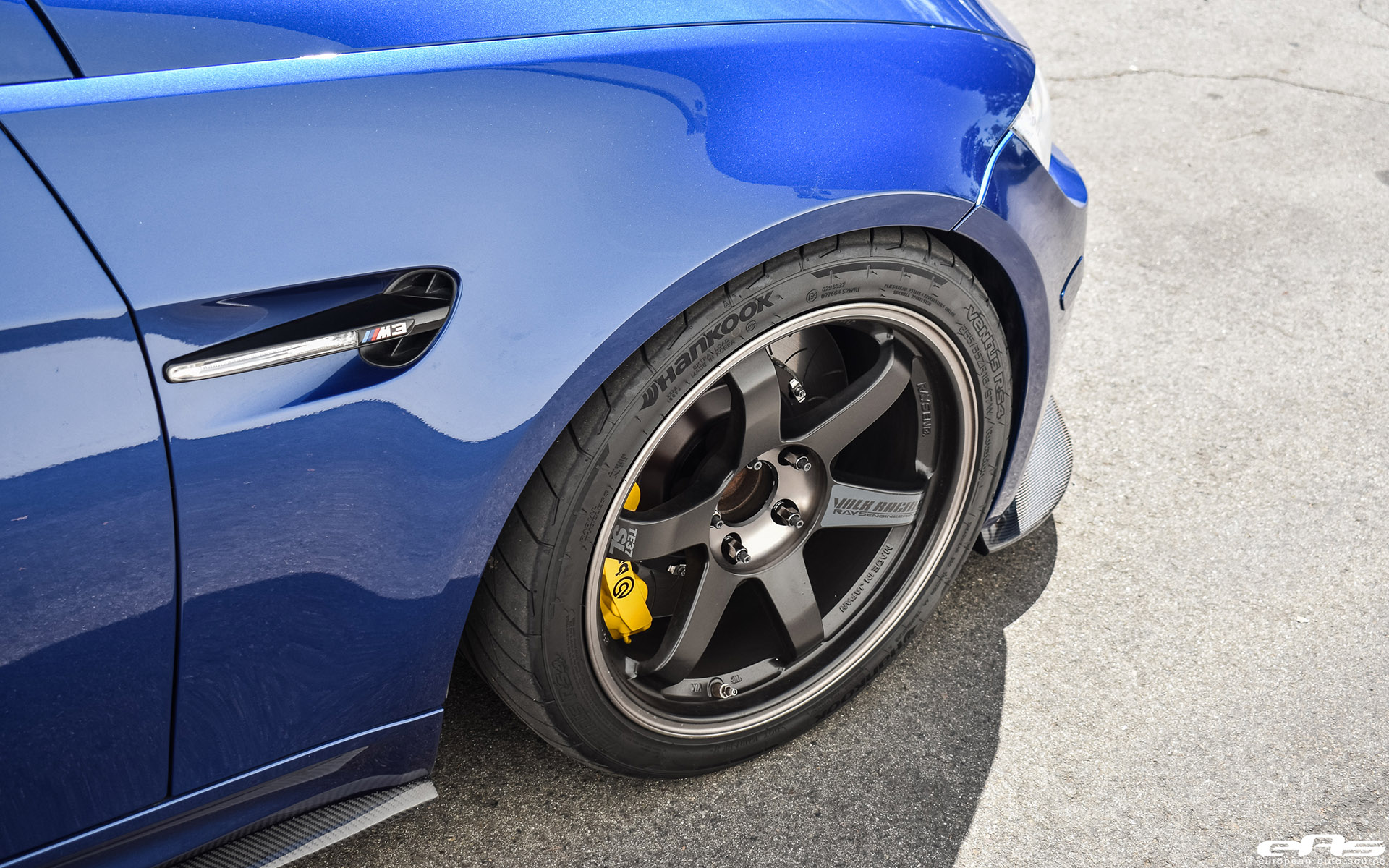 One of the first items to get installed on this vehicle were the wheels. This beautiful LeMans Blue BMW M3 sports a set of beautiful Volk TE37 SL Black Edition wheels.