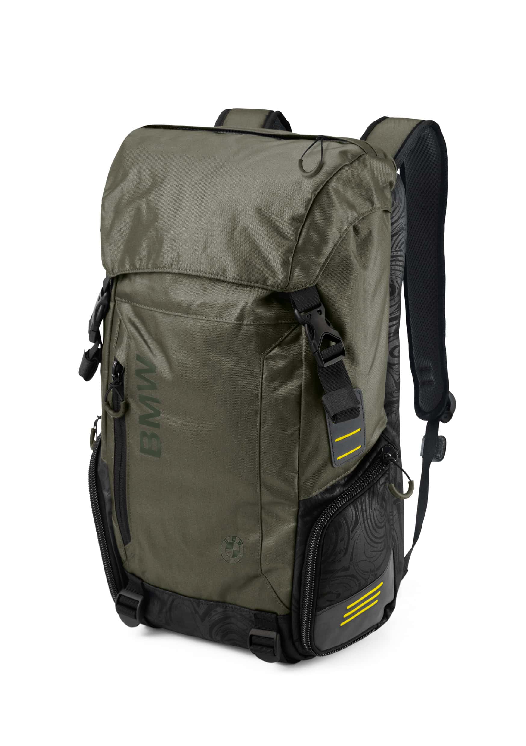 Without a doubt the head turner items in this new collection will be the ones done in BMW’s trademark prototype camouflage. For the first time, the psychedelic circles that are normally intended to camouflage the proportions and lines of forthcoming BMW models now grace the articles in a Lifestyle collection as a design highlight. The blue and olive shades, together with the yellow styling elements and reflectors, add very modern splashes of color to the BMW Active products.