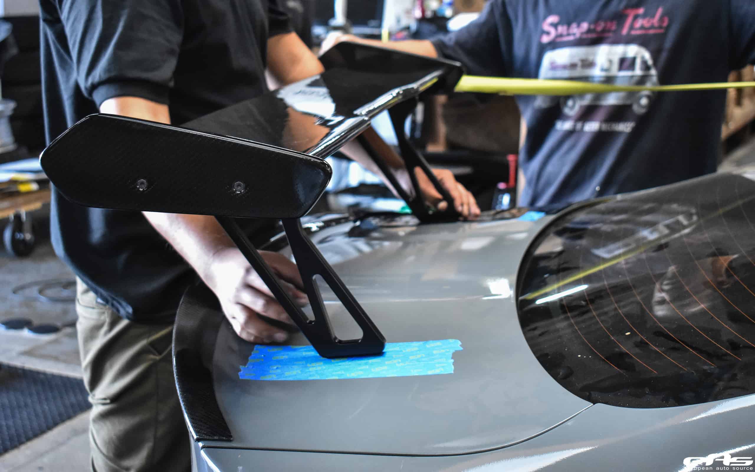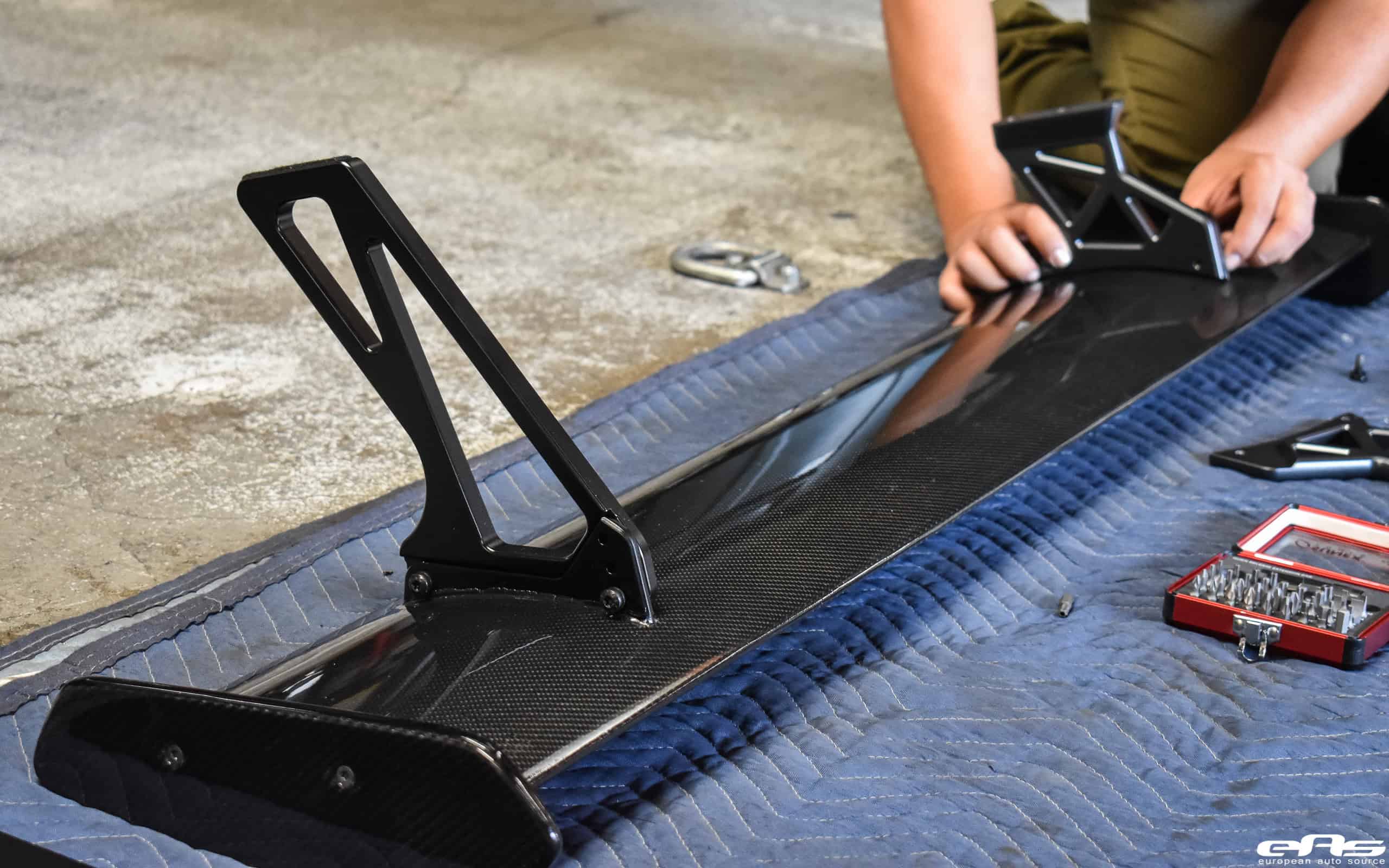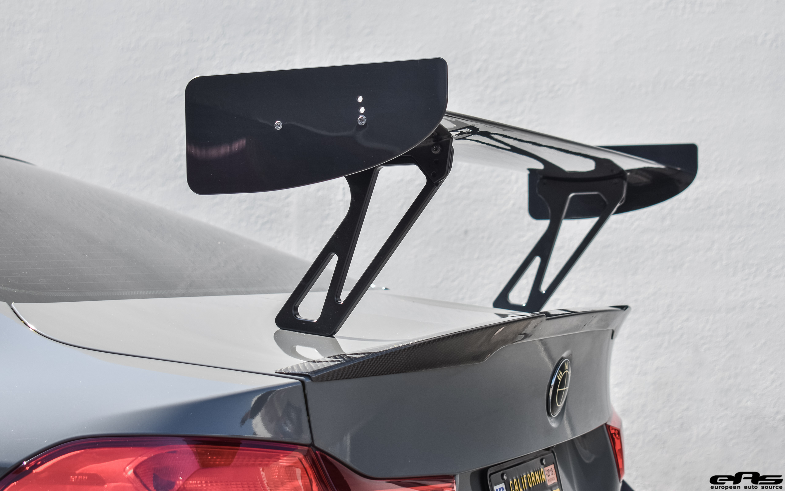 The build started off with a set of carbon fiber aerodynamic upgrades. The APR Performance carbon fiber front wind splitter was installed, followed by the BMW M Performance carbon fiber rear spoiler, carbon fiber front splitters and carbon fiber mirror caps. A Kohlenstoff carbon fiber rear diffuser is matched with an RKP GTS high wing mount set, giving the vehicle that BMW M4 GTS look. The overall dark/grey scheme suits the vehicle well, giving it a classy, understated, yet aggressive exterior appeal.
