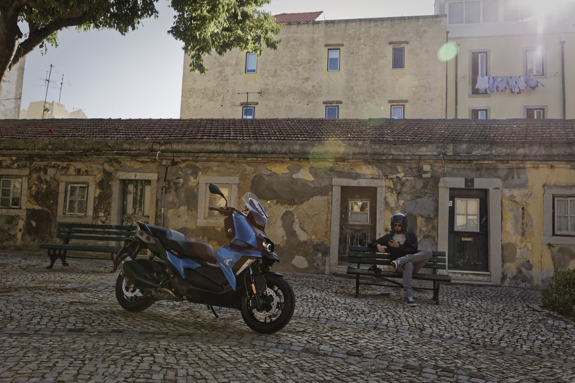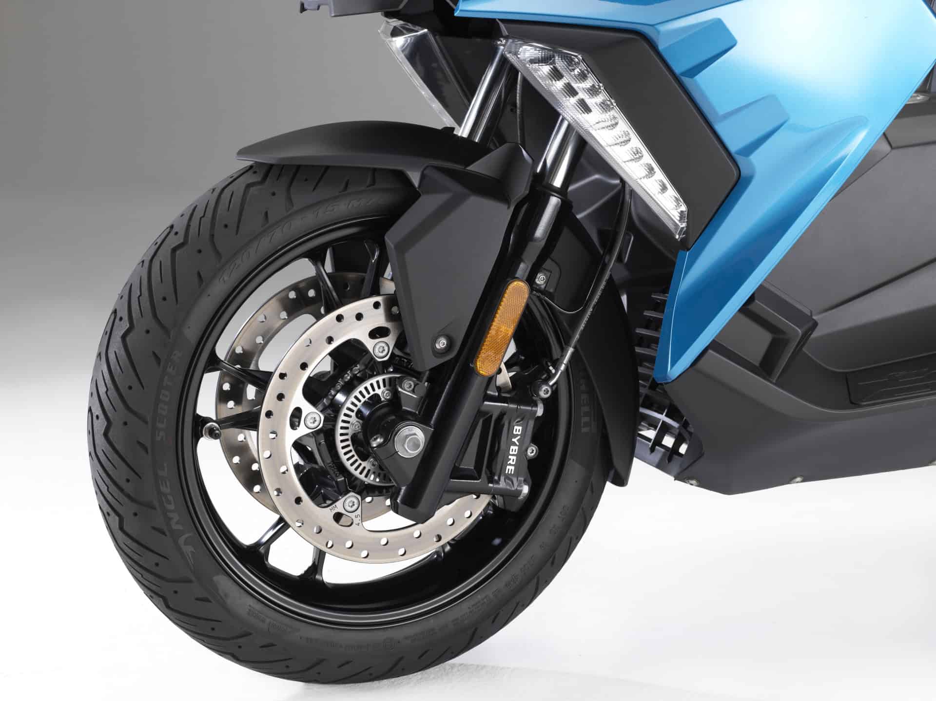 In the chassis area, the new BMW CÂ 400Â X sports a rugged tubular frame made of steel. Suspension and damping are taken care of by a telescopic fork at the front and two spring struts at the rear. The set-up and spring travel have been selected so as to ensure that sporty, dynamic riding fun is combined with a very high level of comfort. Supreme brake performance and outstanding safety are provided by the twin disc brake at the front in conjunction with a single disc brake at the rear, along with ABS as standard.