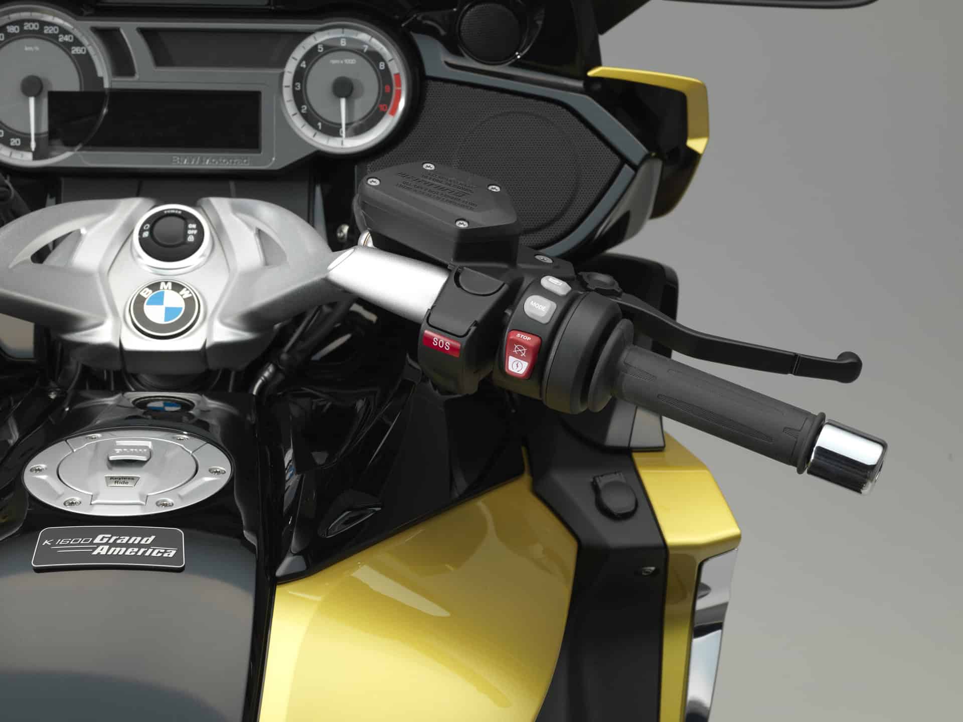 Chrome-plated rear silencers arranged parallel to the road are harmoniously integrated in the elegant, flowing design. The authentic look of the BMW K 1600 Grand America is rounded off with a top case complete with integrated passenger backrest. In addition to expanded transport capacity, the BMW Grand America offers significantly enhanced travel suitability due to the additional seating comfort for rider and passenger. The top case is also an instantly recognizable indication of a vehicle concept developed specifically for extended touring.