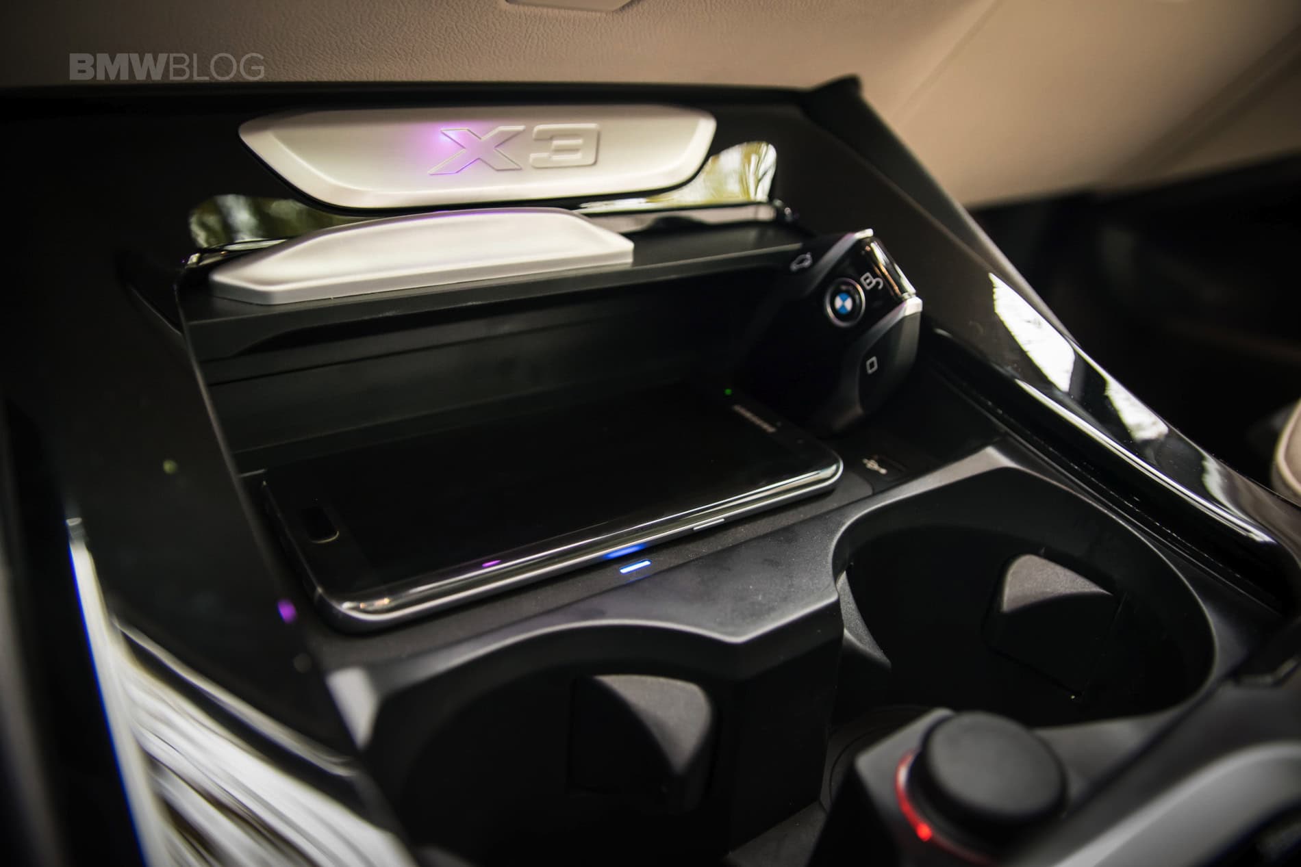 You also get plenty of storage bins through out the cabin and some great cup holders up front. Right next to them you’ll find a generous induction charging plate for phones with wireless charging capabilities. Right above it there’s a subtle X3 badge engraved, for dramatic effect. For most of my time with the car, I charged my phone using the wireless charging plate but I have to say that it’s so big, you’ll have to watch it every time you step on the gas more vigorously, as your phone might just fly off.