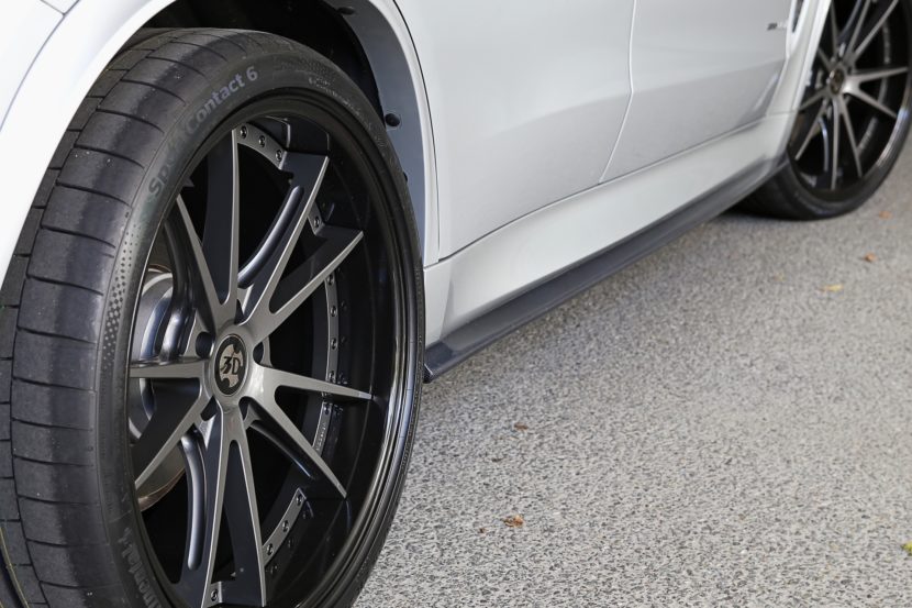 On the sides, there are carbon fiber side skirts. Though subtle, they look good and add a sportier touch. They also visually lower the X5, making it look more athletic, more like a performance SUV rather than a soccer mom SUV. Then there’s the rather large carbon fiber diffuser out back, which sits between the exhausts. While it doesn’t really do any real aerodynamic work, it still looks great. All of the carbon fiber bits are made in Japan, with a 1×1 carbon weave finish.