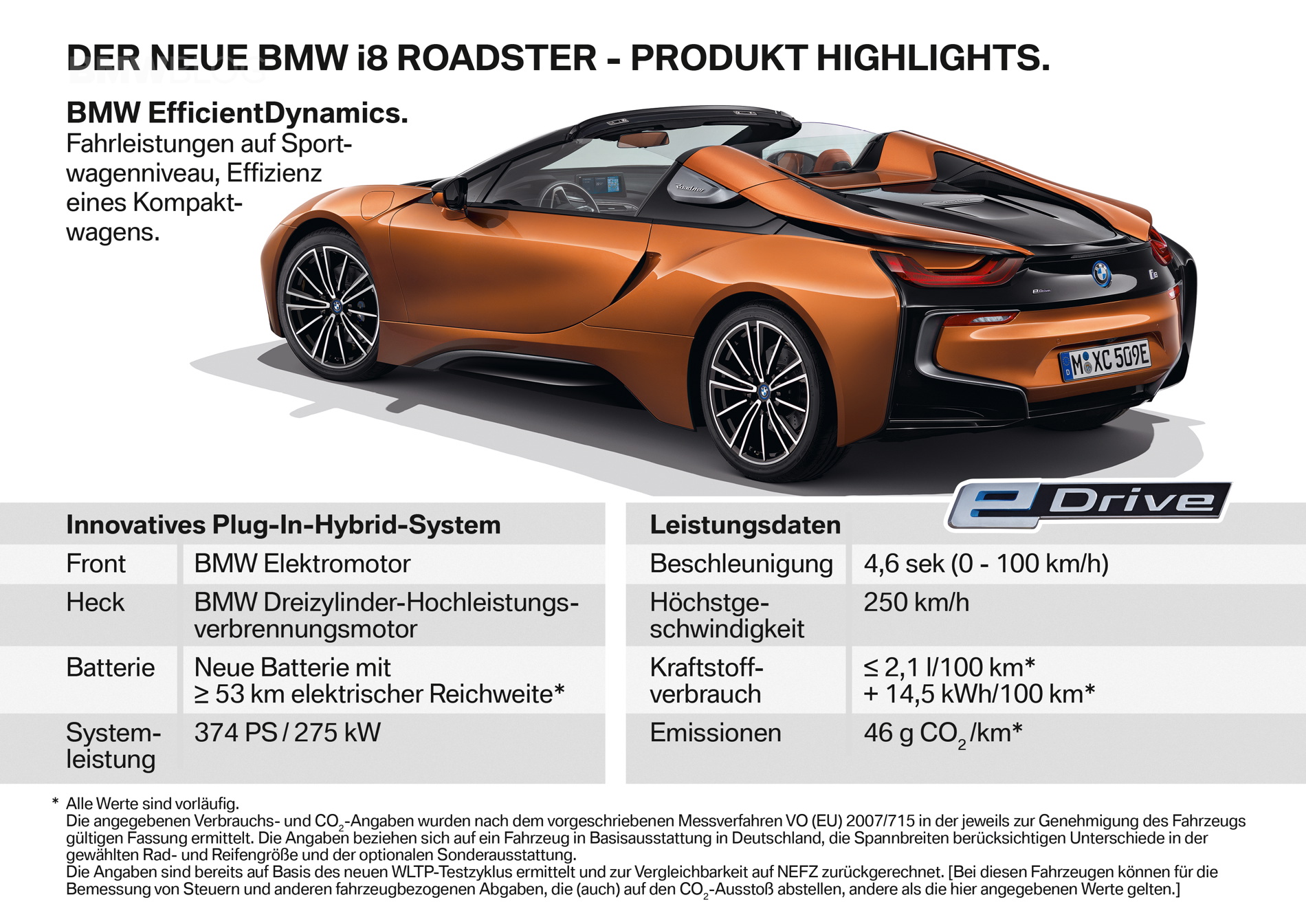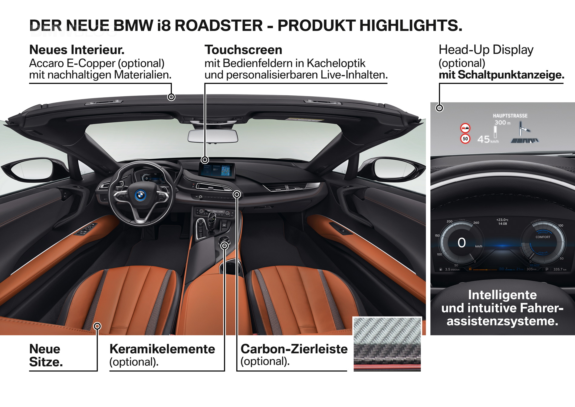 Speaking of power and performance, the BMW i8 Roadster won’t really have any more of either. Its 1.5 liter turbocharged three-cylinder engine remains unchanged, so it still makes 228 hp and 236 lb-ft and is mated to an electric motor and six-speed automatic gearbox, powering the rear wheels. While an electric motor powers the front wheels, thus giving it real-time torque-vectoring all-wheel drive. The latter motor makes 141 hp and 184 lb-ft of torque, up only slightly from the non-LCI BMW i8. So 0-60 mph happens in about the same 4.2 seconds. BMW claims there’s no performance penalty with the Roadster.