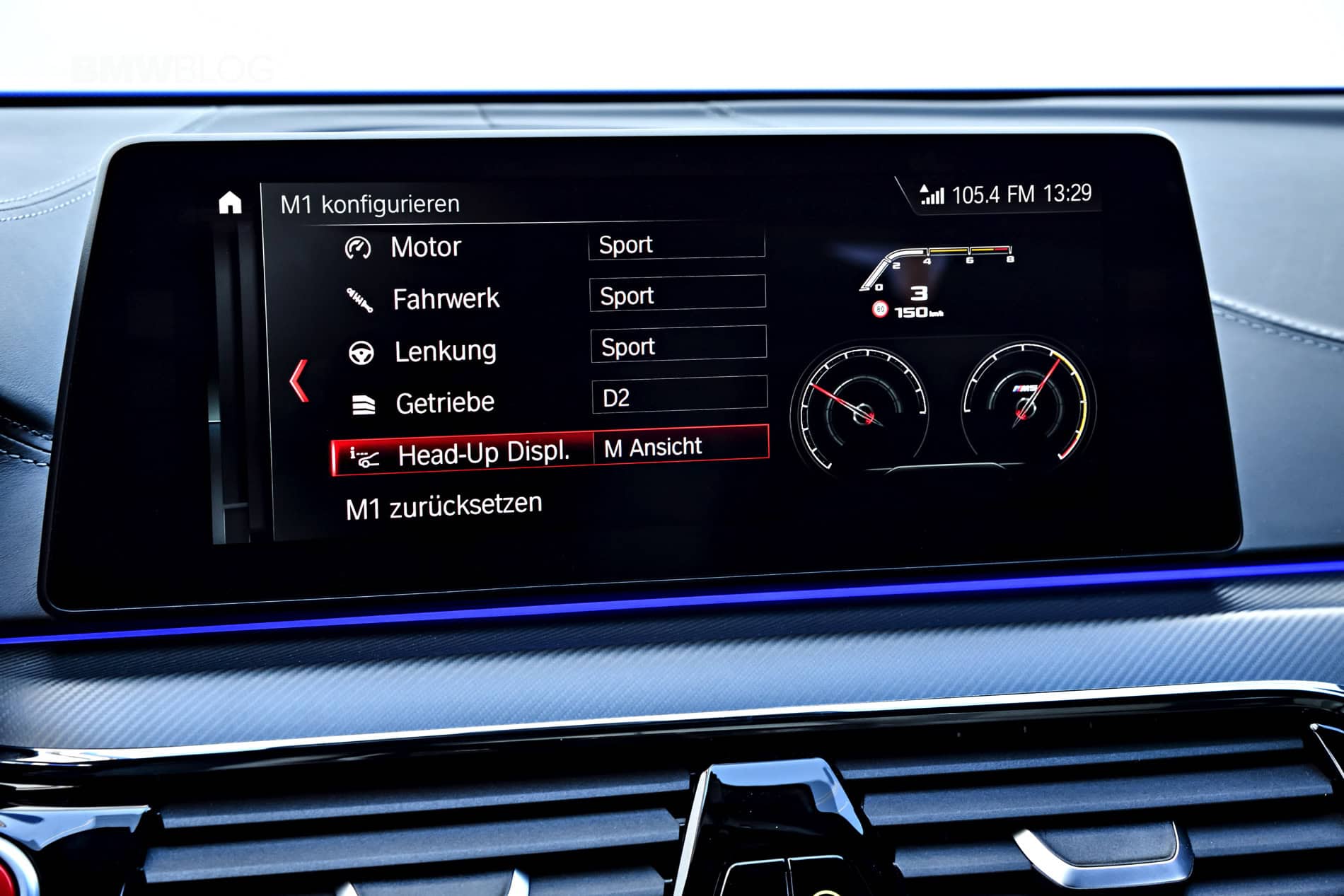 The same impressive grip was evident in straight line acceleration where top speeds quickly reached 150 mph. Luckily the F90 M5s we sampled were equipped with Carbon Ceramic brakes which allowed for late braking and turning.