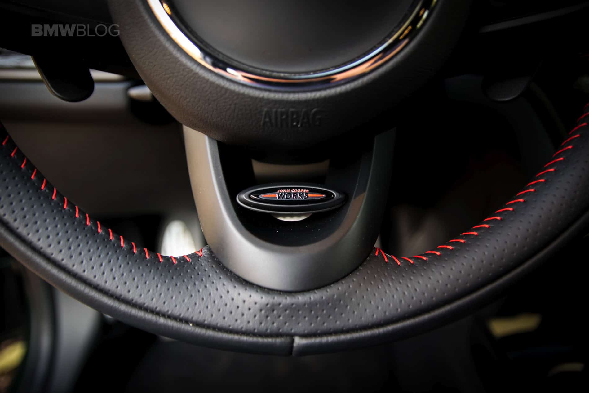 From the outside you can immediately tell that this is a JCW model just by looking at it. It has that special look to it that lets you know it means business. You can get the JCW exterior kit on other models but there are some things that set apart the real deal from the posers. For example, you may notice that our tester doesn’t have fog lights, something that has been fitted as standard on cars with considerably lower prices for years now and no, it’s not because MINI wants you to pay extra for them. In this case, the fog lights are missing because in their place we have intercoolers to help cool down the engine and feed cool air into the intake.