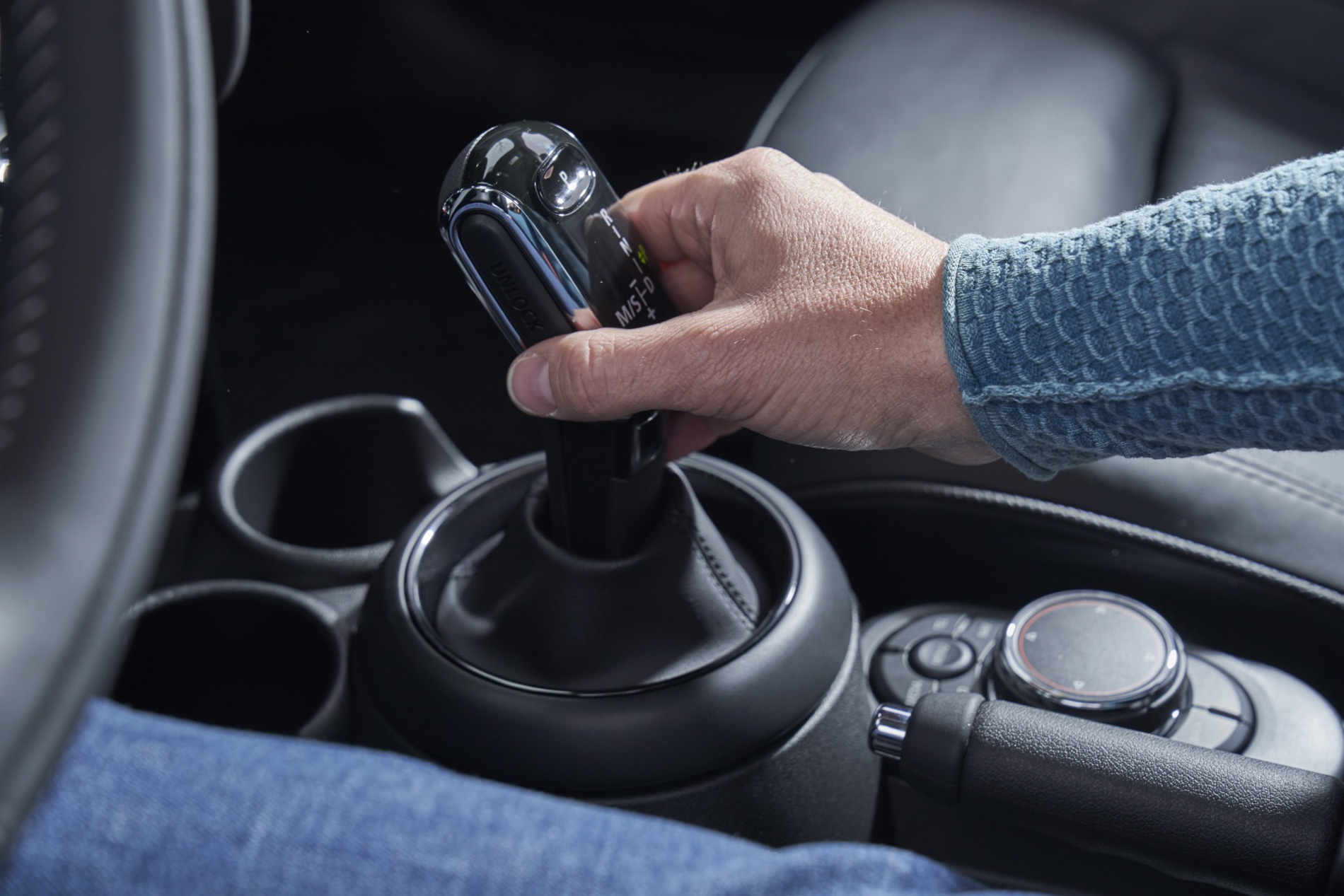 Even before their facelift, the small MINI models F56, F57 and F55 will receive a new transmission: A 7-speed DCT will replace the previously offered six-speed automatic transmission in MINI One and MINI Cooper D, and should provide noticeable efficiency benefits. Together with the dual-clutch gearbox, a new gear selector lever is moving in, which looks more modern and sportier than the previous version.