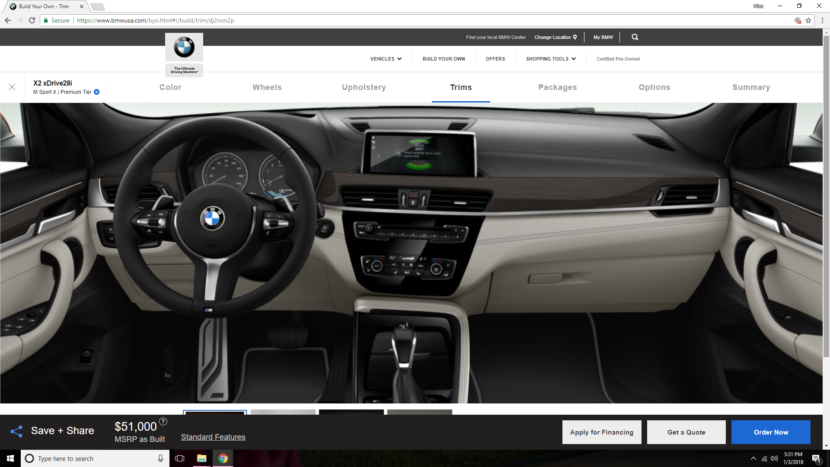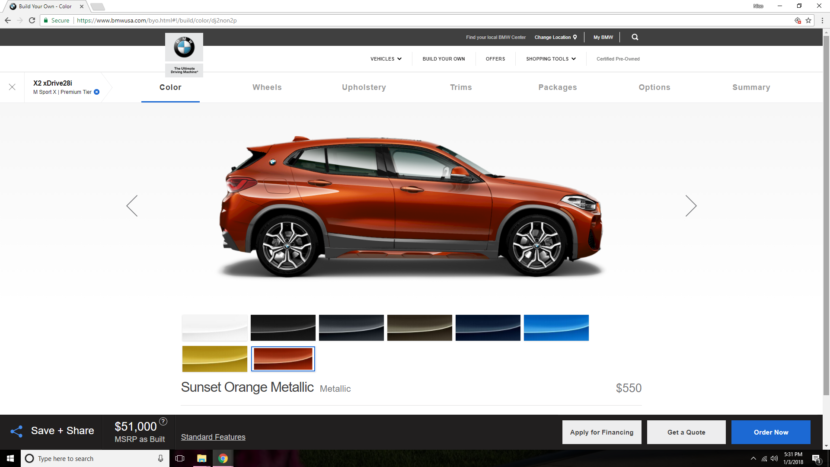 Thankfully, there are a lot of interesting color options for the BMW X2. Colors like Misano Blue, Sunset Orange and Dark Olive are all interesting and we’re thankful that BMW is giving such an interesting car some interesting colors. Personally, I’d go with Sunset Orange because I think it looks best with the X2’s plastic bumpers. On the inside, I’d also go with the Oyster Dakota Leather option, as the lighter color makes the interior feel a bit more spacious. The Fineline wood trim also looks good with that interior color.