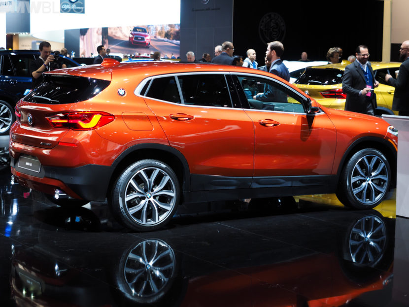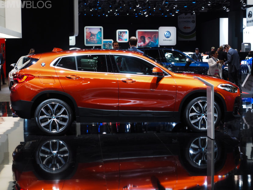 We’ve already seen the X2 in its Galvanic Gold Metallic paint and Misano Blue and it looks good in both of those colors. Misano Blue seems to be the best color for it so far and we think bright colors do it justice more than others. Both of those X2s we saw in Detroit were wearing the M Sport X Design trim, which is the sportier, more street-oriented trim line for the X2. It comes with larger air intakes in the front and more aggressive wheels, to make it seem like a sportier road car. However, we’re now seeing a BMW X2 wearing its “Standard” trim and a different paint color.