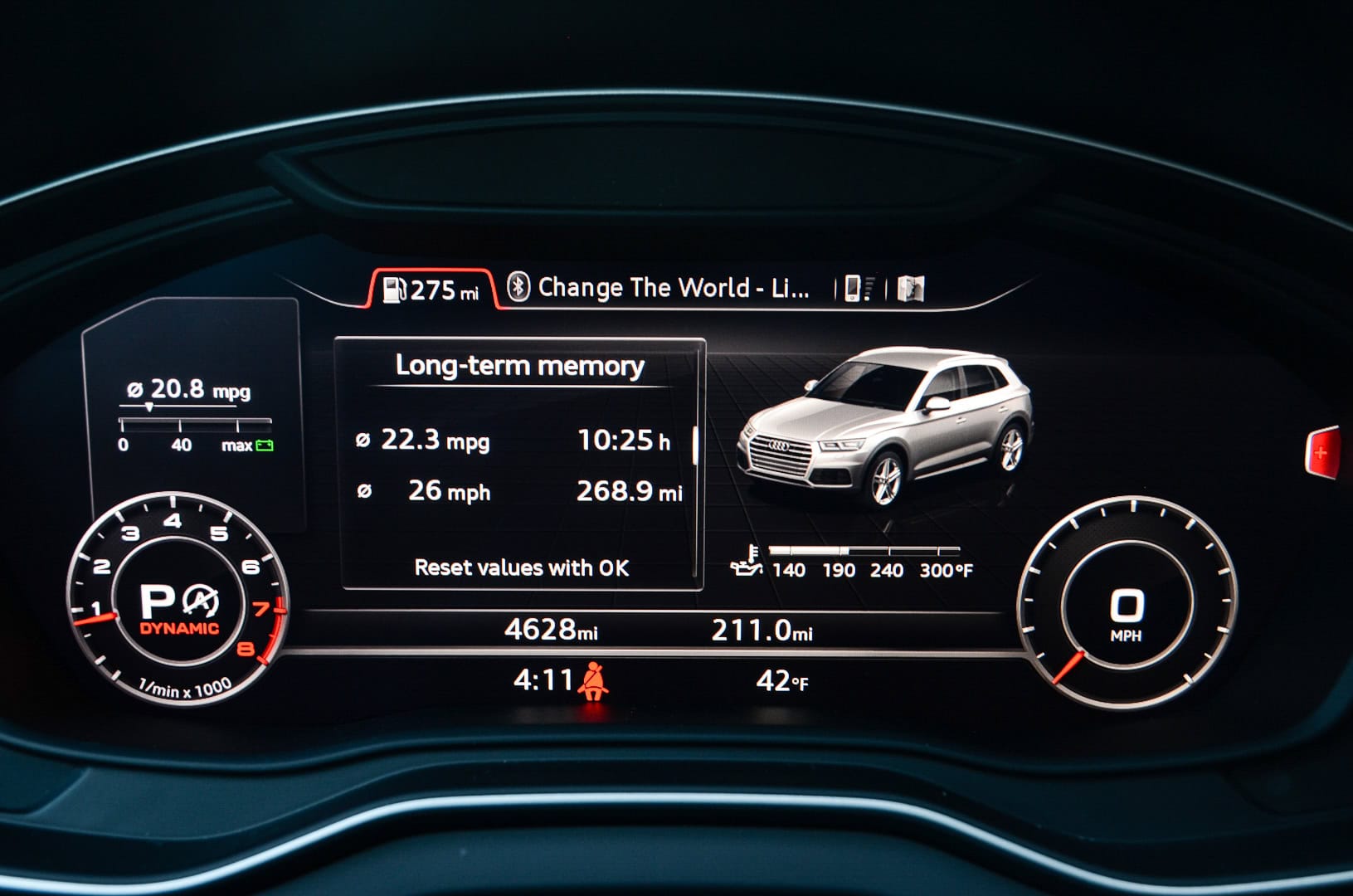That’s not to say the new Q5 can’t be fun, though. Under the hood lies a 2.0 liter turbocharged four-cylinder engine that makes 252 hp and 273 lb-ft of torque. It’s the same engine you’ll find in most other modern Audis, but that’s no bad thing. The 2.0 TFSI engine is a smooth and punchy companion that’s a delight to use. Punch it and it responds quickly, makes a satisfying growl and provides ample thrust, even in such a heavy SUV. It’s not as quick as an Audi A4 or A5, with the same engine, obviously, but it’s more than quick enough.