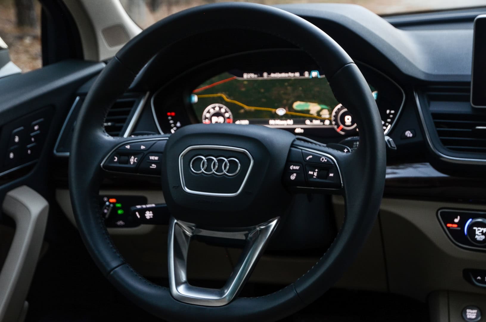 The attention to detail is also remarkable. Almost everything that looks like metal is metal and every single knob in the car is knurled, even the faux cigarette lighter plug. Little touches like that make the Q5’s cabin feel special and more expensive than it is. Though, there are some curiosities about material choices. For instance, while every knob possible is knurled and beautiful, the steering wheel paddle shifters are plastic and can feel a bit cheap. Having said that, the steering wheel itself is really nice to hold, is wrapped in high-quality leather and is the right size and shape. Also, all of the steering wheel buttons are ergonomic, laid out perfectly and really intuitive to use.