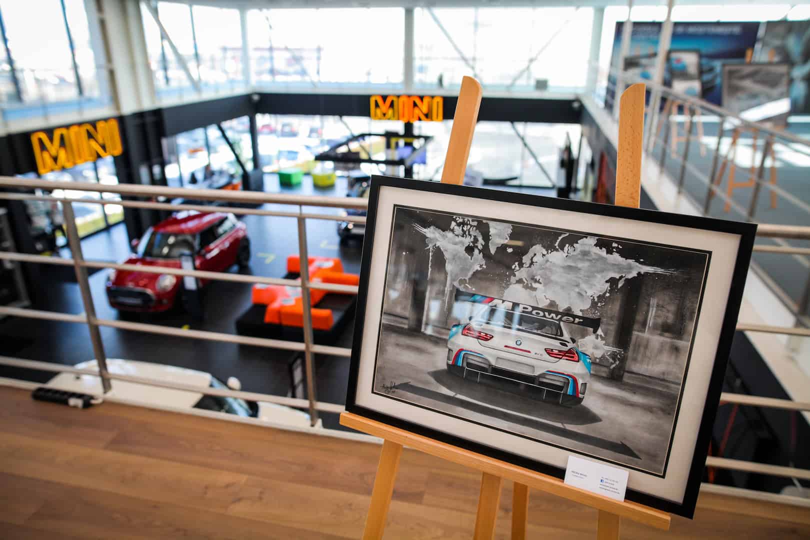 From the E9 CSL model to the iconic M1 and the more recent BMW M6 GT3 model, legendary cars have been brought to life by Andra in her first exhibition. Were you to find yourself at the exhibition you’d be hard pressed to figure out who drew them though, as I found her to be a quiet and down-to-earth kid of girl, just strolling around the paintings beautifully displayed at the Automobile Bavaria showroom in Bucharest, which also happens to be the only BMW M authorized dealer in the country. If the PR representative wouldn’t have pointed me in her direction, I might’ve missed the chance to learn her story.