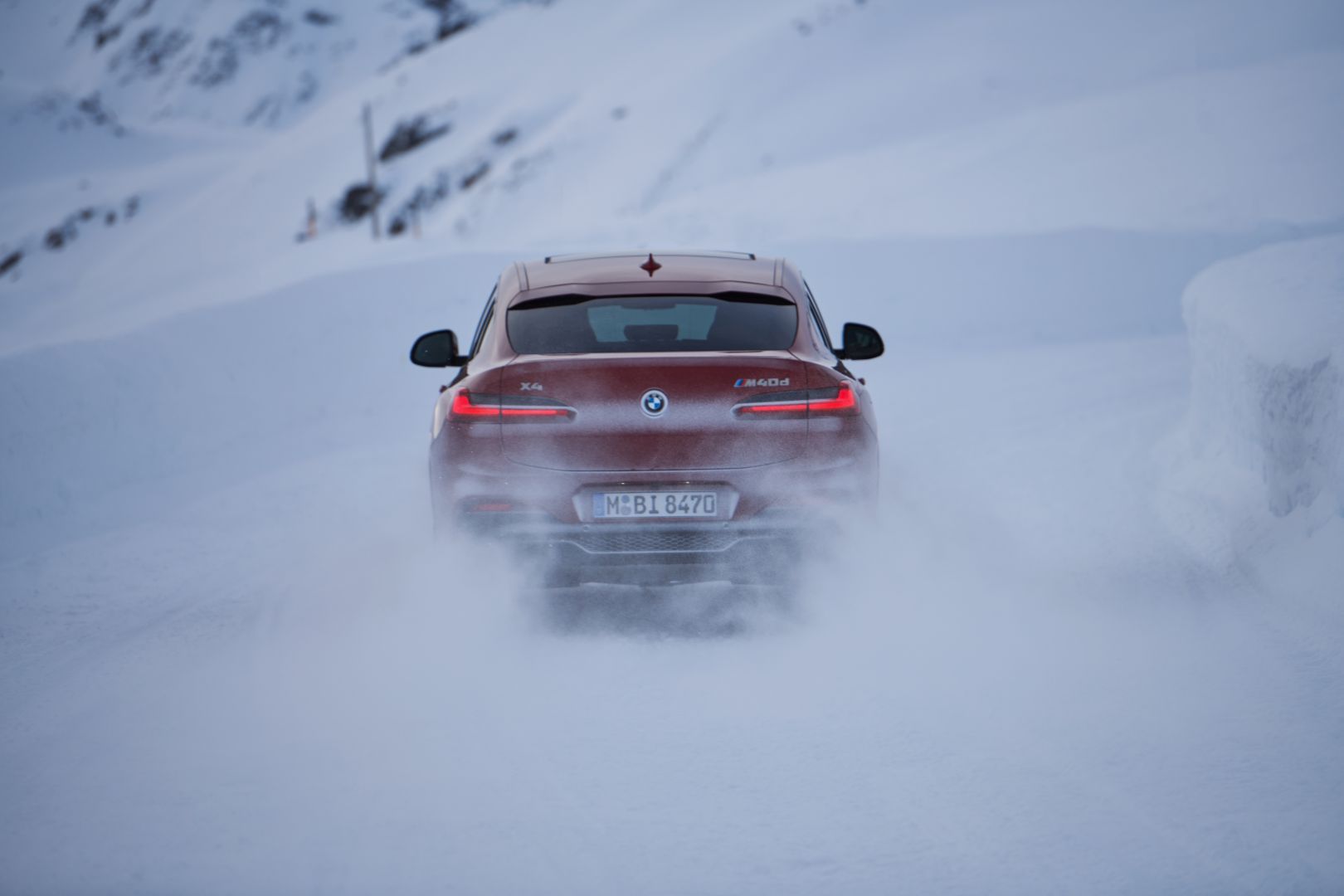 The latest edition of the system is characterized by reduced weight and optimized internal efficiency. In addition, the precise electronic control of the intelligent all-wheel drive ensures especially sporty and brand-typical power distribution. The tightly winding, snow-covered hairpin bends of the Flüela Pass are the ideal setting for the rear-wheel-oriented xDrive all-wheel drive. Dynamic cornering turns piloting the X4 into an intense driving experience in these conditions.