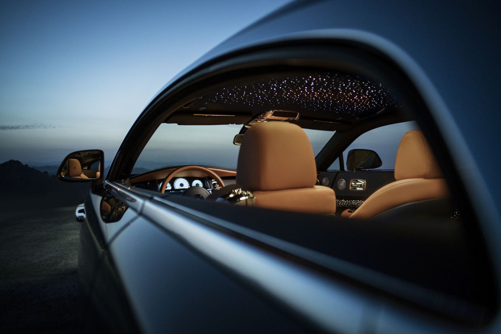 Wraith Luminary’s cockpit is trimmed in Saddlery Tan, though the rear seats contrast in Anthracite leather, thus highlighting the prominence of the driver’s position. Contrast piping and stitching are also noticeable, allowing the front of the car to meet with the rear. Alternatively, a more dramatic contrast can be selected by specifying Seashell colored leather in the rear, both of which will be perfectly coalesced by the inclusion of a two-tone steering wheel.