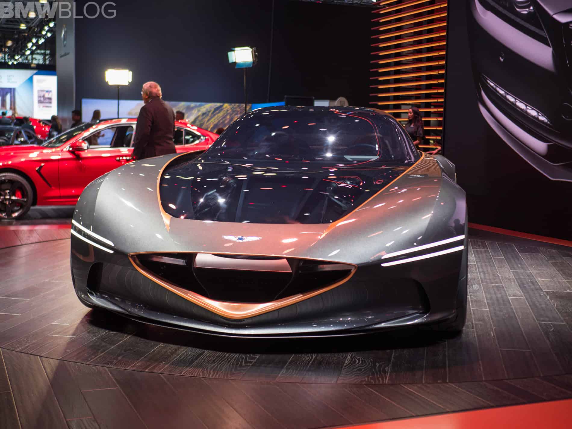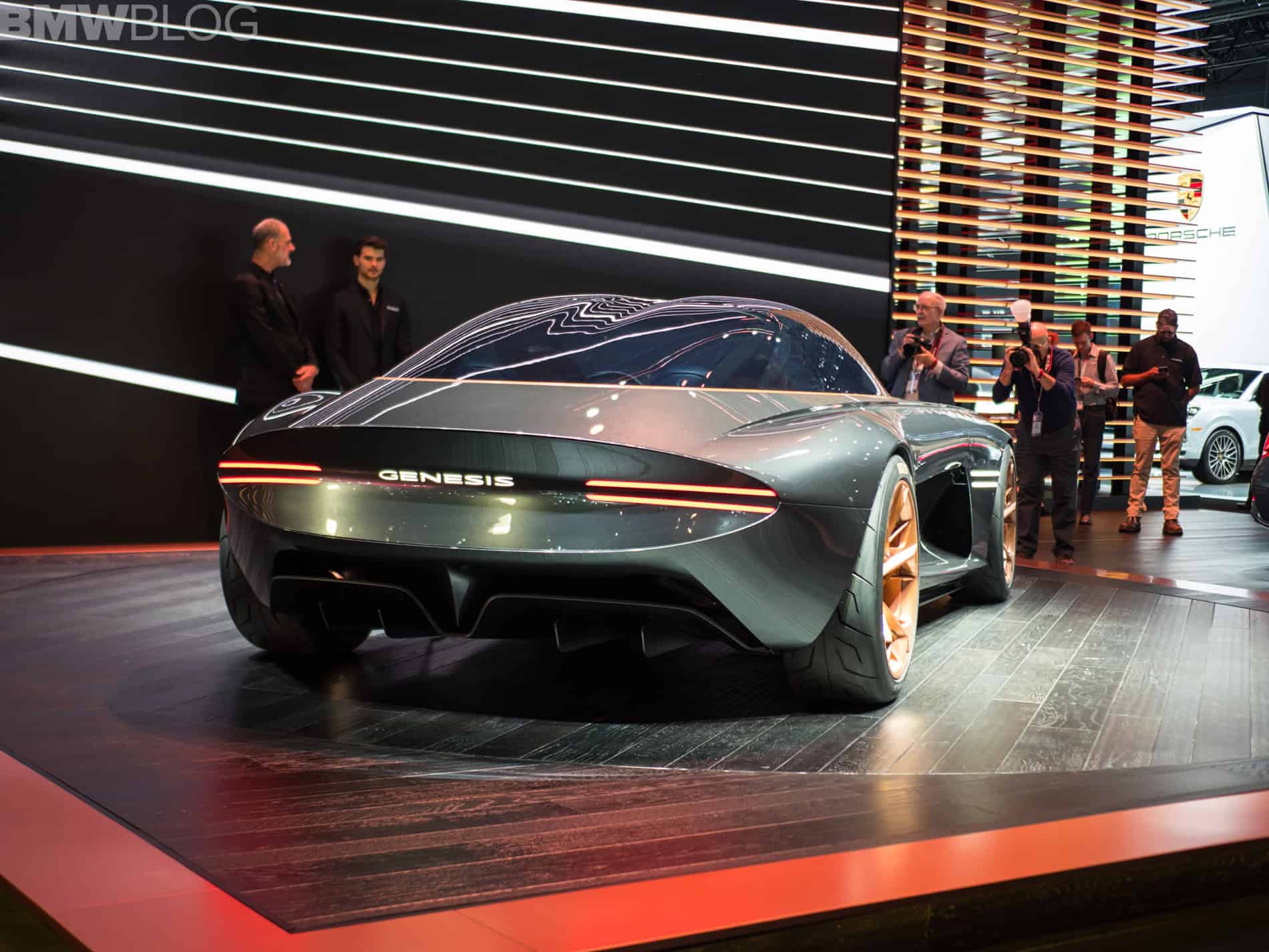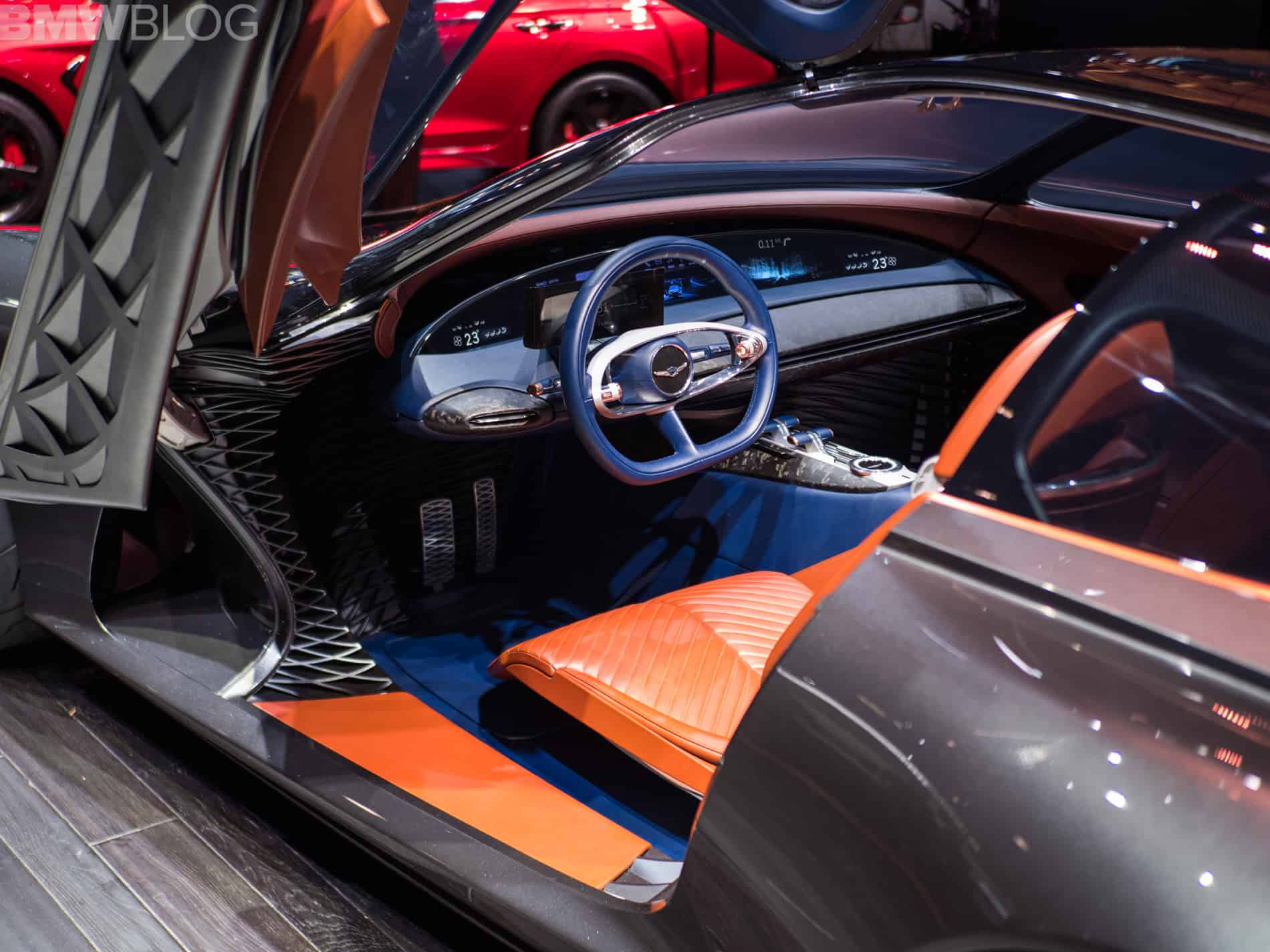 At the front, it has a very short front overhang and, most notably, a clear glass hood. That allows you to see the coilover front suspension, which is very cool. At the back, there is a little ducktail spoiler and two skinny horizontal taillights. It’s also rear-wheel drive and features an electric motor powerful enough to propel the concept from 0-60 mph in three seconds, according to Genesis.