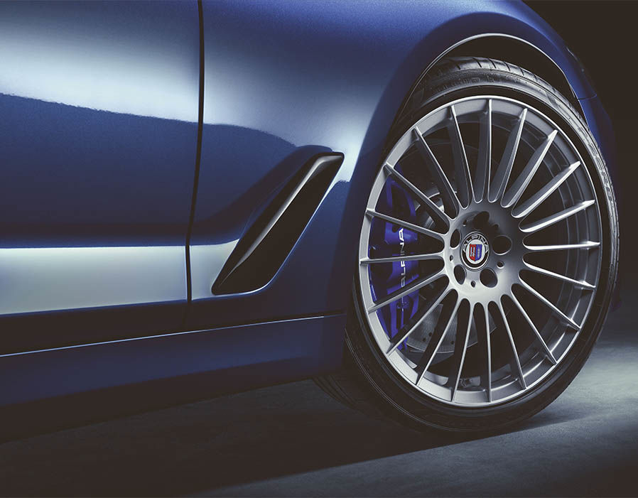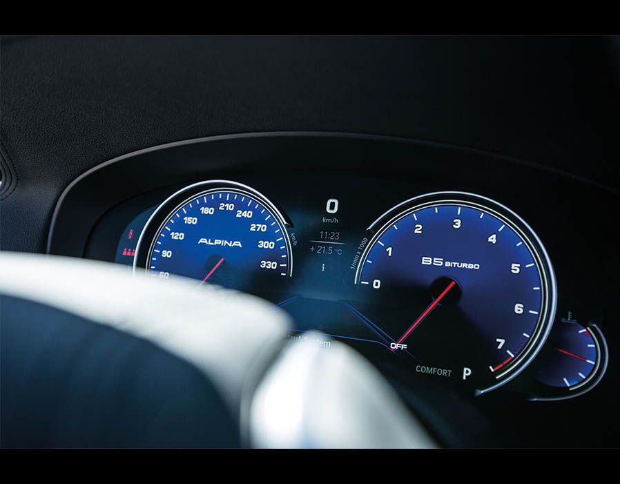 ALPINA’s refinements continue inside the cabin, with Nappa leather throughout and blue ambient lights. There’s also a range of customizable trim colors and wood finishes for those looking for a more personalized cabin.