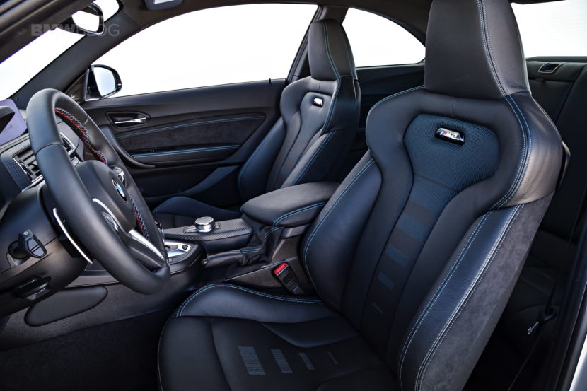 We also get a peek inside the new M2 Competition, which has some improvements as well. Mainly the seats, which have been pulled from a BMW M4 and given some tweaks. So they feature blue or orange contrast stitching (color choice is optional), as well as illuminated “M2” logos in the seatbacks. They look far better than the seats on the standard BMW M2, which are from the regular old 2 Series. Which was always rather annoying, that the BMW M2, top-of-the-line 2 Series, has the same exact seats as the economy-minded 220d. So these new seats are a rather welcome addition.