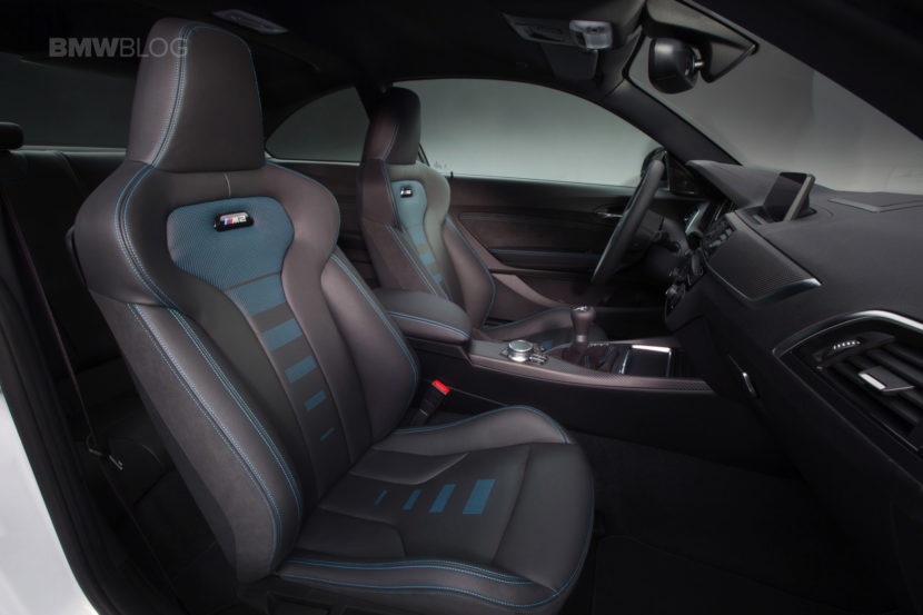 Under the hood lies a modified version of the same S55 engine that’s found in the BMW M3 and M4. So it’s a 3.0 liter twin-turbocharged inline-six engine that makes 410 hp and 406 lb-ft of torque. So it makes a bit less power than the standard M3 but the same amount of torque. We suspect the lower power figure is done so as to not infringe on the M3’s position in the M Division’s performance hierarchy. Though, its matching torque figure will make the M2 Competition an absolute weapon from stop-light to stop-light. Or it could just turn its rear tires to smoke. Time will tell.