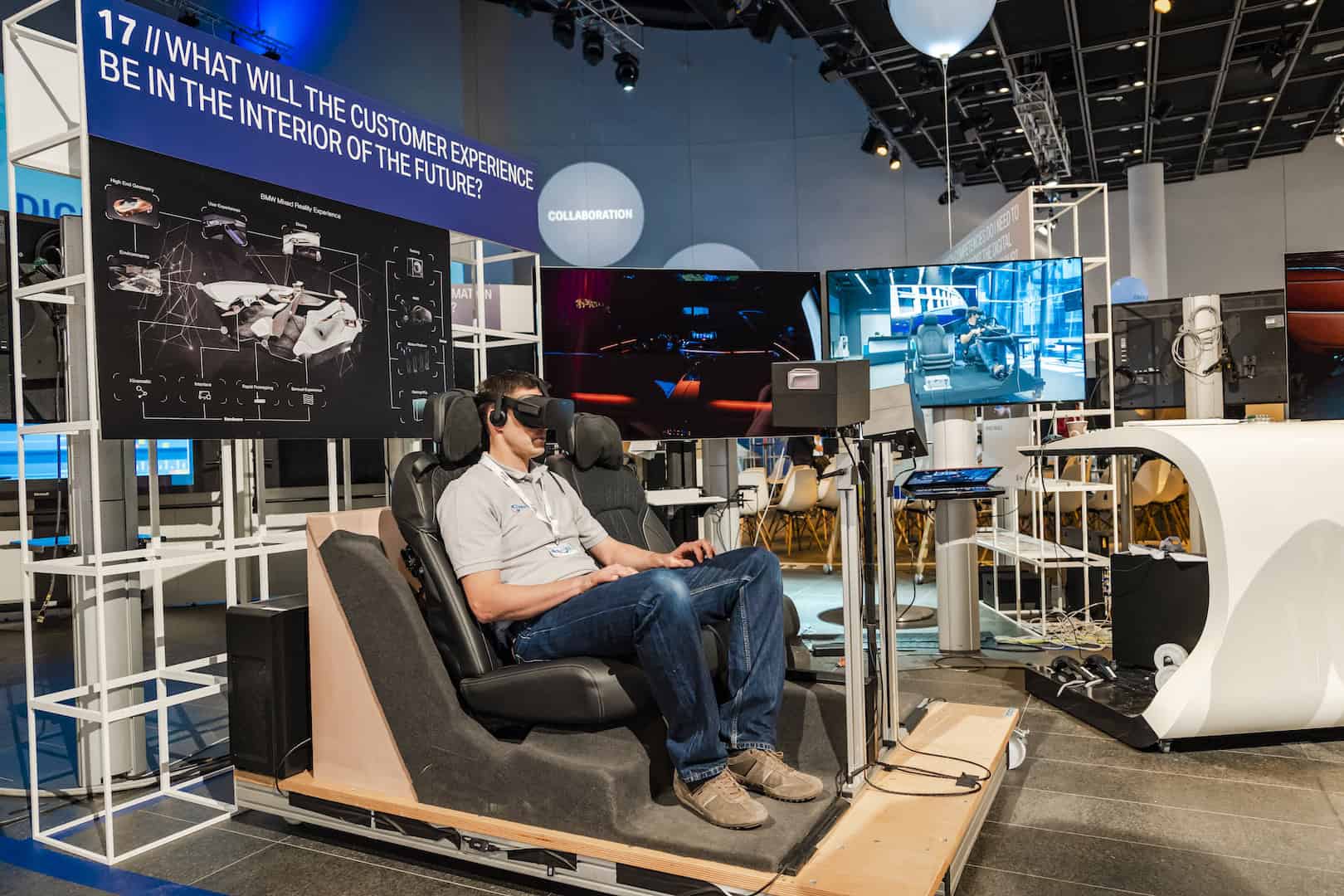 Visual sensations alone are not enough though. For this reason, BMW employs a reusable interior assembly which, thanks to the use of rapid prototyping, further enhances perception by producing a mixed reality experience. Precise, stereoscopic acoustic playback, e.g. for the characteristic BMW engine sound, further intensifies the immersive experience. This, combined with the VR model enables to experience the vehicle in different environments.