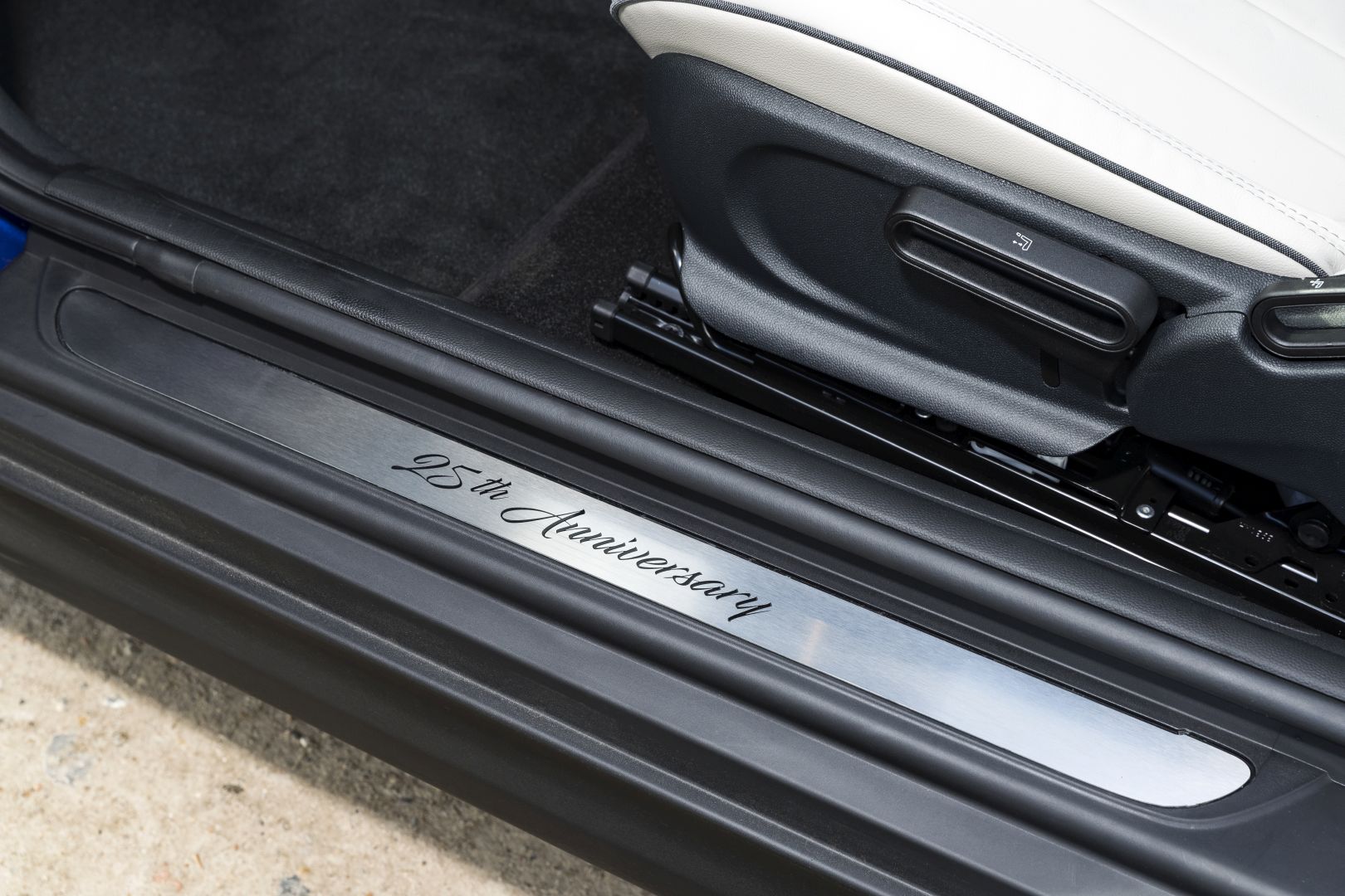 To mark this significant milestone, MINI UK is launching a special 25th Anniversary Edition of the MINI Convertible. Complete with anniversary tread plates and plaque, along with an exclusive combination of Lounge leather upholstery in Satellite Grey with a Starlight Blue metallic exterior. Building on the MINI Cooper S Convertible specification, this edition also features white mirror caps, white bonnet stripes, MINI Yours Union Jack woven fabric roof and 18” MINI Yours Vanity Spoke allow wheels in two-tone as standard.