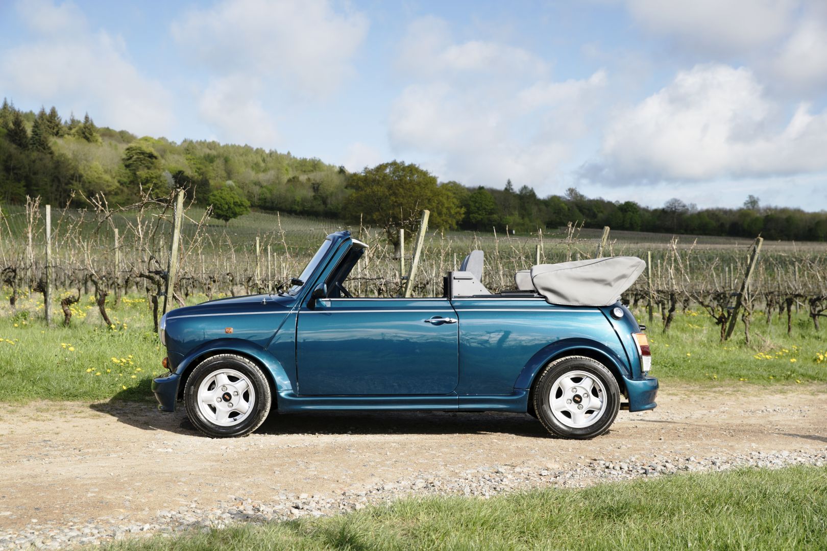 During the trial, German-based Lamm Autohaus removed the roof of the vehicle prior to sale in the UK and it was an instant hit with all 75 vehicles selling immediately – making it one of the rarest Minis ever produced. At launch Mini Cabriolet cost almost double that of the 1993 Classic Mini and was available in two colors, Caribbean Blue with a Grey hood and Nightfire Red with matching hood, and featured new 12-inch diameter Revolution wheels as well as chrome sill kick strips. The car also featured a specially strengthened body shell to accommodate the new hood.