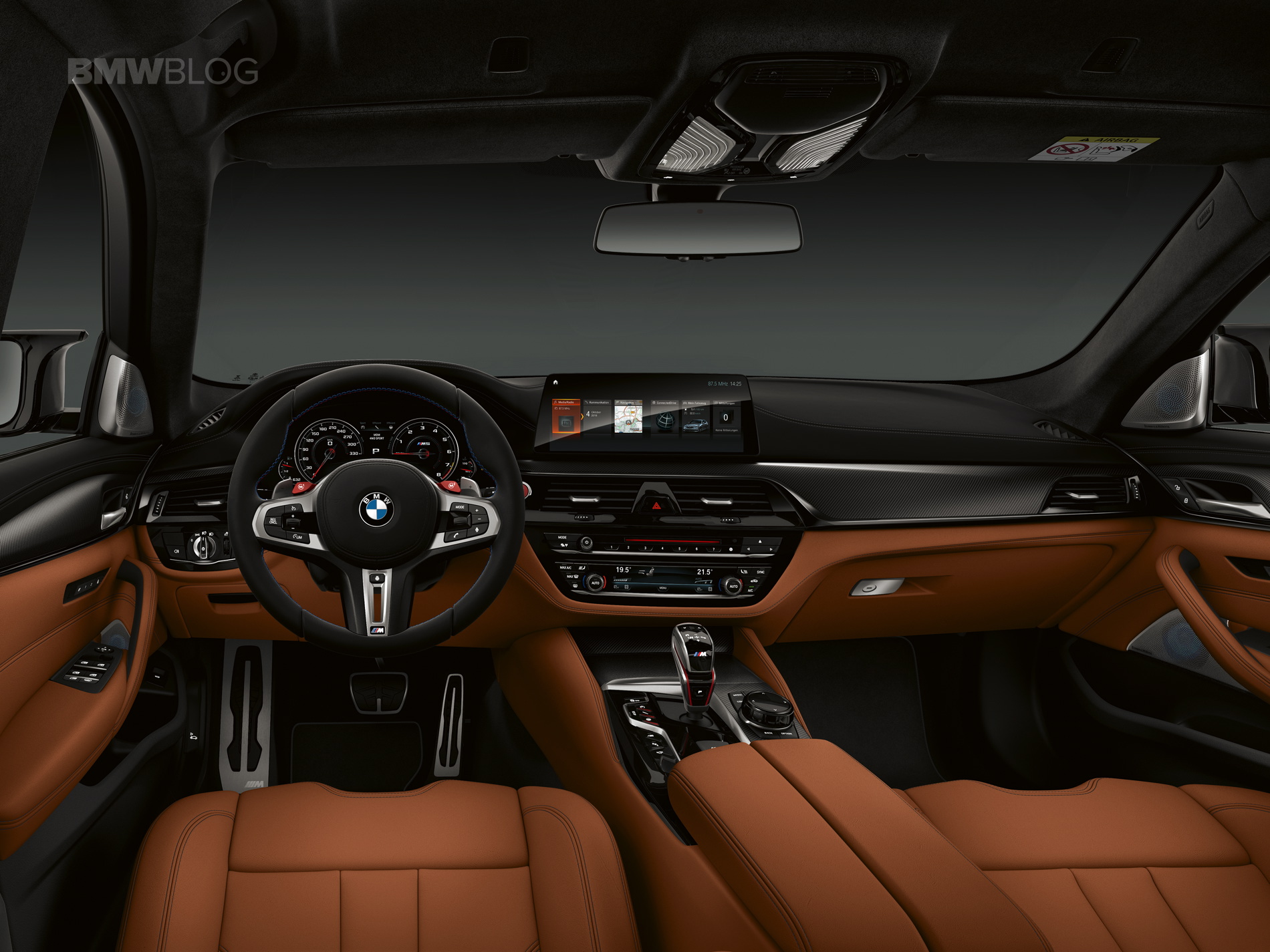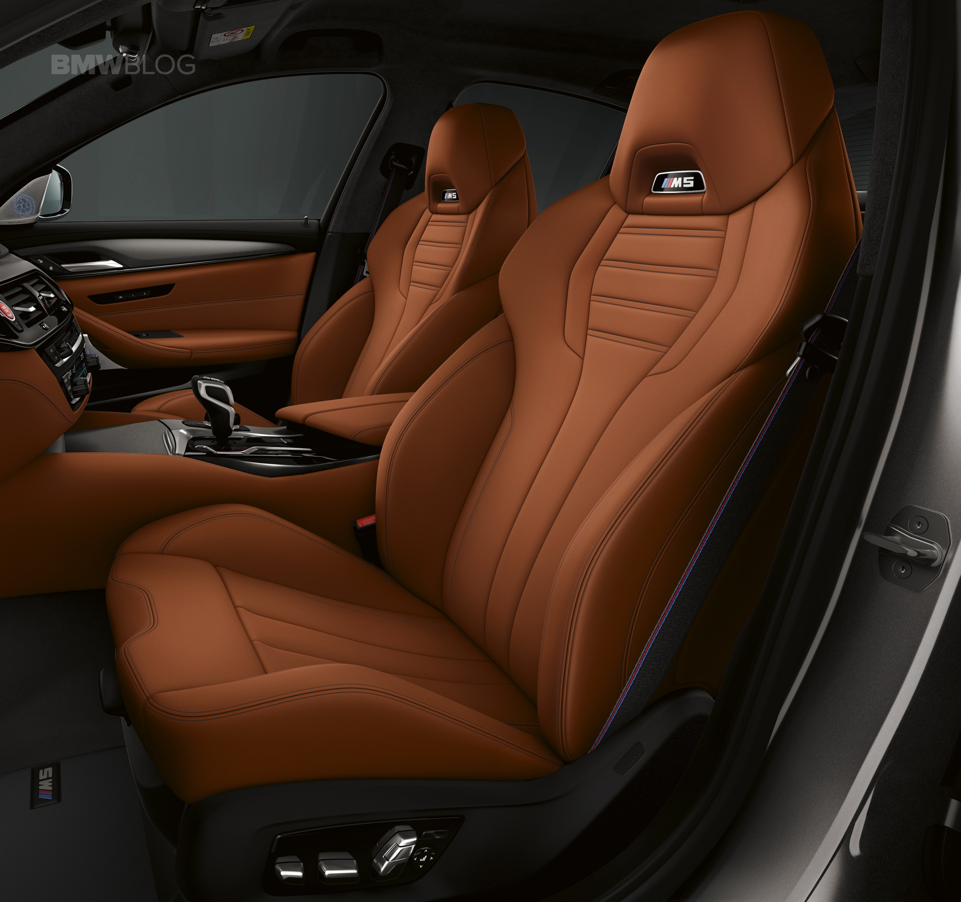 On the outside, the BMW M5 Competition gets BMW’s usual Competition Package treatment. That means black grilles, black mirror cars, a black Air Breather and black badges. It also gets a little black decklid spoiler, giving it a more aggressive look. BMW also get the M5 Competition new wheels, which are a bit sportier than the standard ones, even if they aren’t some of BMW’s best. Inside, the M5 Comp gets M-striped seatbelts and floor mats, to make it feel a bit more special.