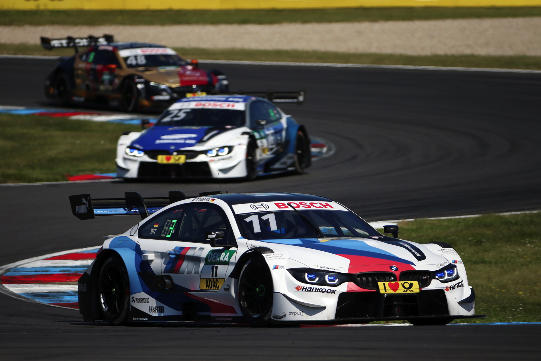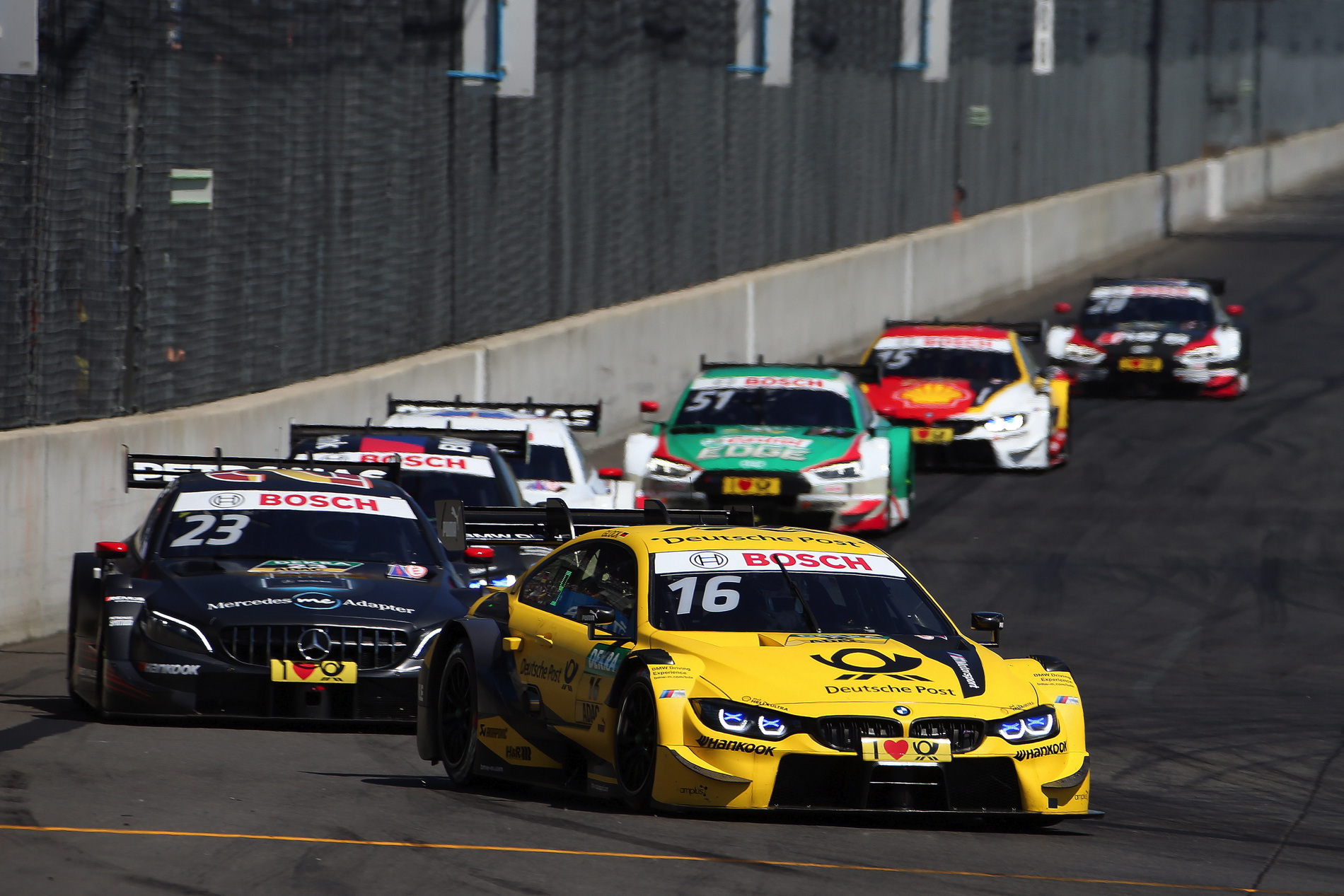 Another BMW driver celebrated on the podium after the fourth race of the 2018 DTM season: after 34 laps, Marco Wittmann (GER) crossed the finishing line in second place in the BMW Driving Experience M4 DTM. The two-time champion was 1.427 seconds behind winner Gary Paffett (GBR, Mercedes). Timo Glock (GER) finished fifth in the DEUTSCHE POST BMW M4 DTM, retaining his top position in the drivers’ standings with 72 points from four races. In qualifying, Philipp Eng (AUT, SAMSUNG BMW M4 DTM) had celebrated the first pole position of his DTM career but had to be content with seventh position in the race. Joel Eriksson (SWE) was also in the points, finishing ninth.