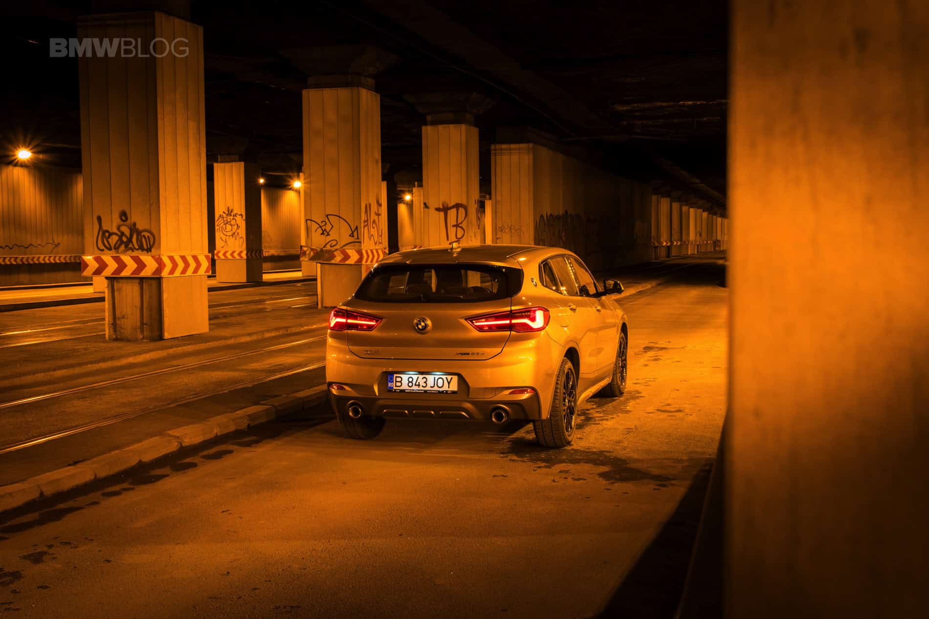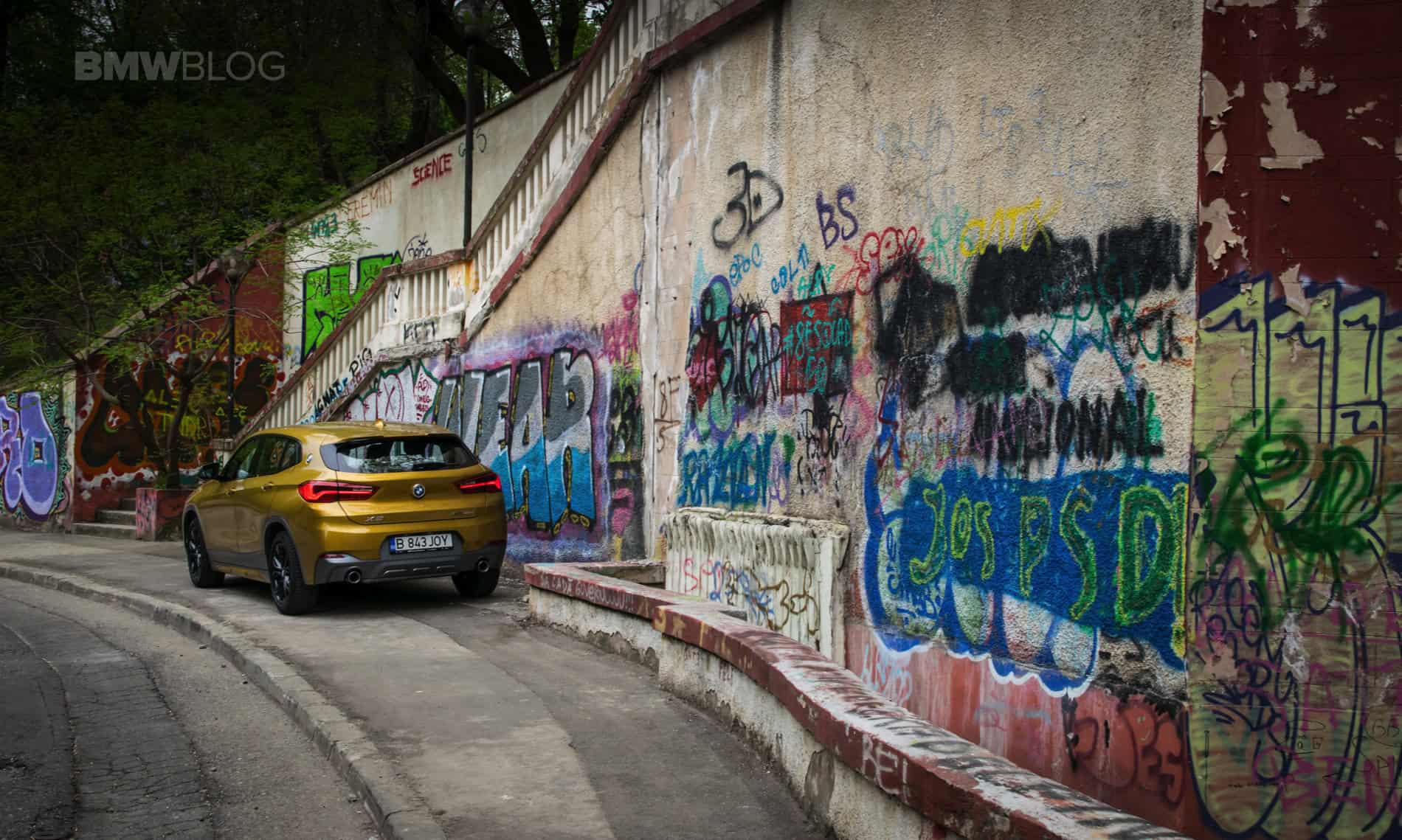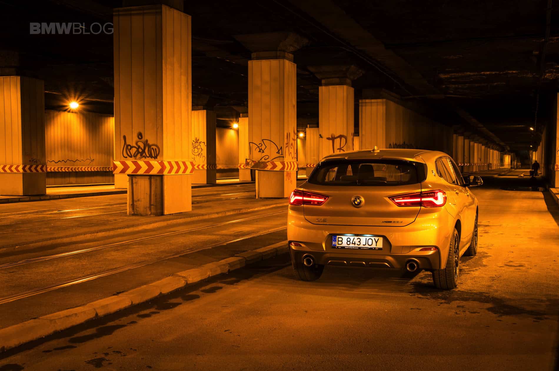 Going back to the front end, the grilles have been inverted, creating a gaping mouth that gives the whole thing an even more aggressive look, combined with the massive air intakes on the front bumper, especially on M Sport X models such as the one we have here. Oh, you didn’t notice? The X2 has three different guises available, all of them unique in the range as well: Sport, M Sport and M Sport X. The M Sport X comes with plastics in different colors compared to the rest of the car, as you can notice from our tester which, even though came in Galvanic Gold, also wore Grey accents. It’s a nice touch, pleasant to the eye but it will depend a lot on the combination of colors you go for.